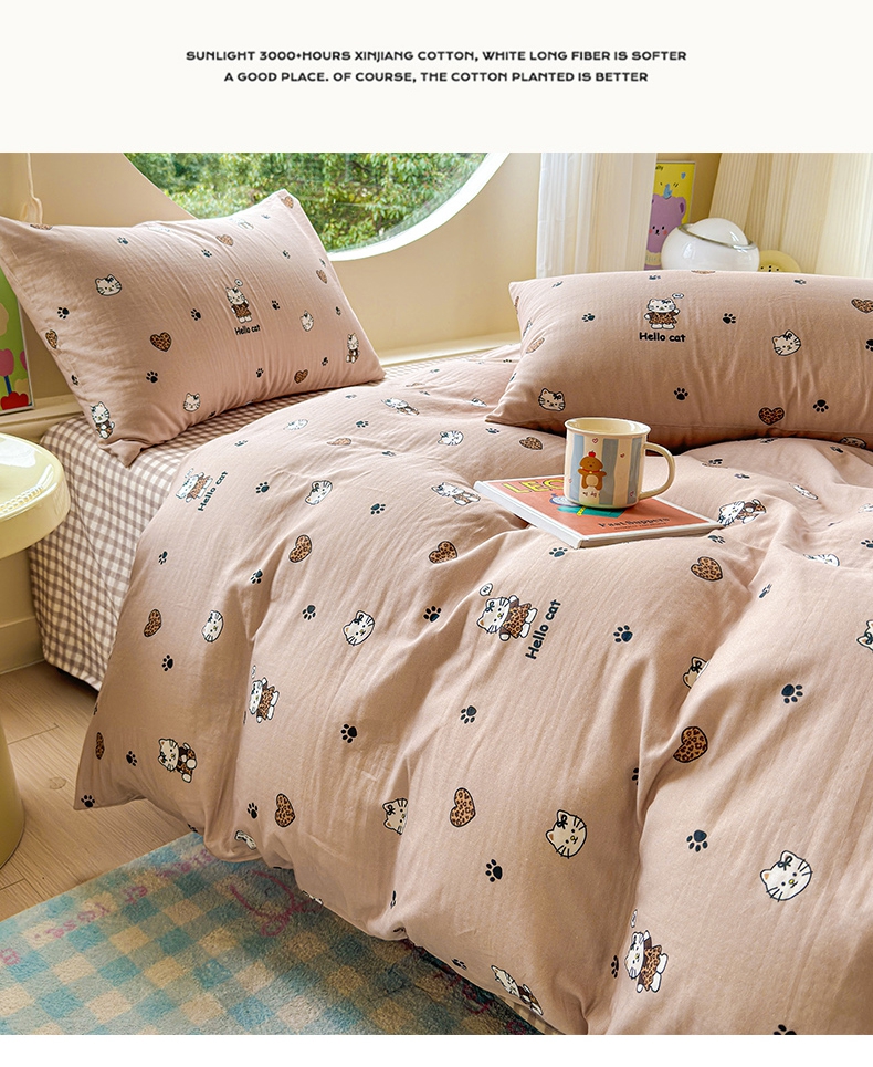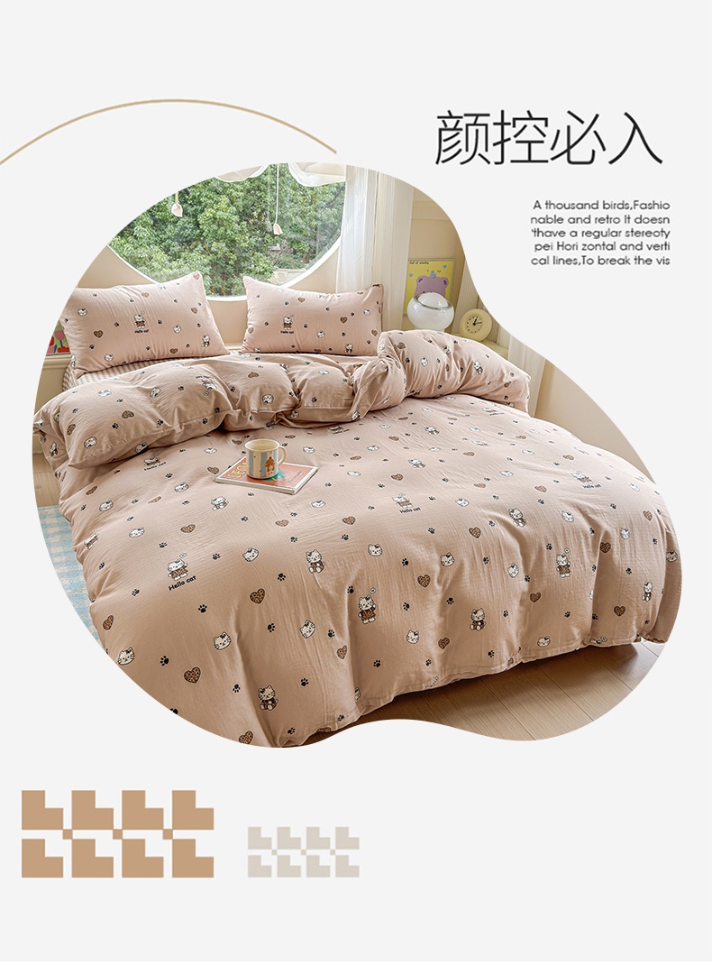 当前位置: 91家纺网 > 商品网购 > 床品套件 > 四件套 > 双层纱四件套 > 感遇家纺 2025新款全棉纯棉千柔双层纱四件套 牛奶猫