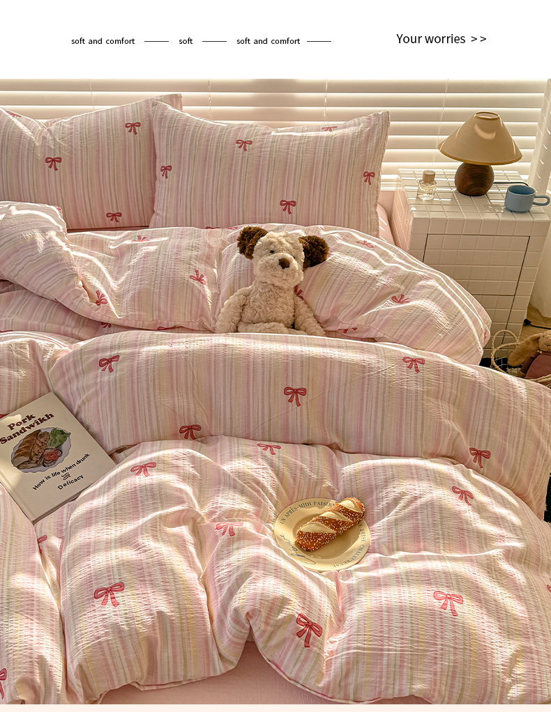 当前位置: 91家纺网 > 商品网购 > 床品套件 > 四件套 > 水洗棉四件套 > 繁花家居 2025学生季第二波木棉水洗棉四件套三件套跑量款 粉黛佳人
