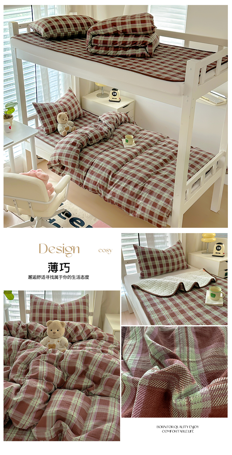 商品名称:美梦家纺2025新款木棉皱皱纱学生床盖四件套 薄巧