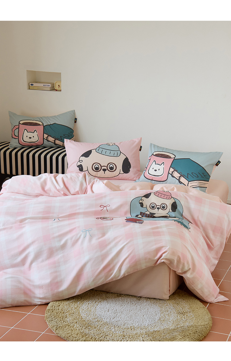 (总)RYB红黄兰 2025新款设计师原创A面全棉色织水洗棉+B面婴儿绒贴布绣四件套,红格笑脸汪,绿格笑脸汪,焦糖奶茶猫,墨绿奶茶猫,蜜格萌宠粉,蜜格萌宠蓝,包装
