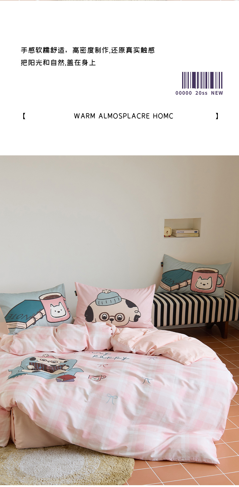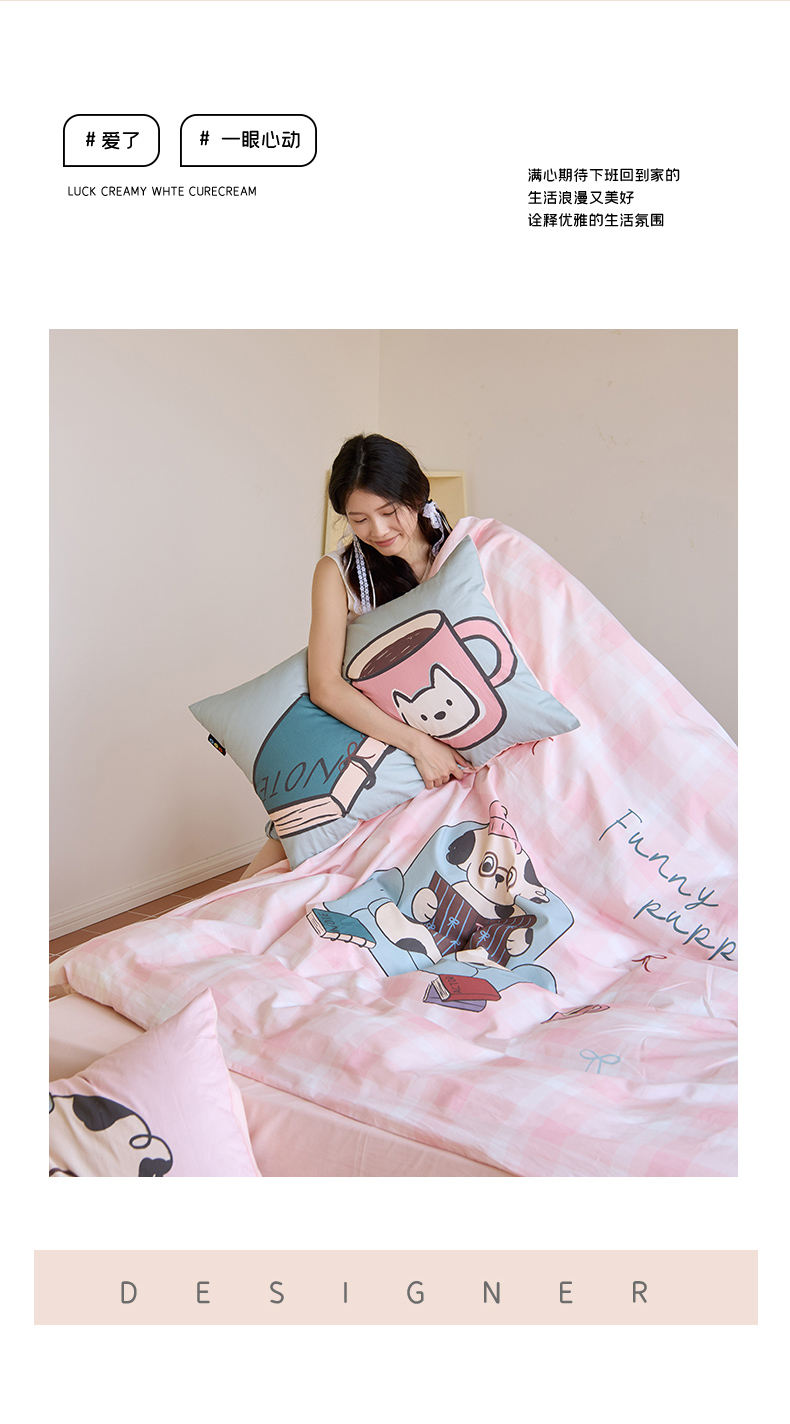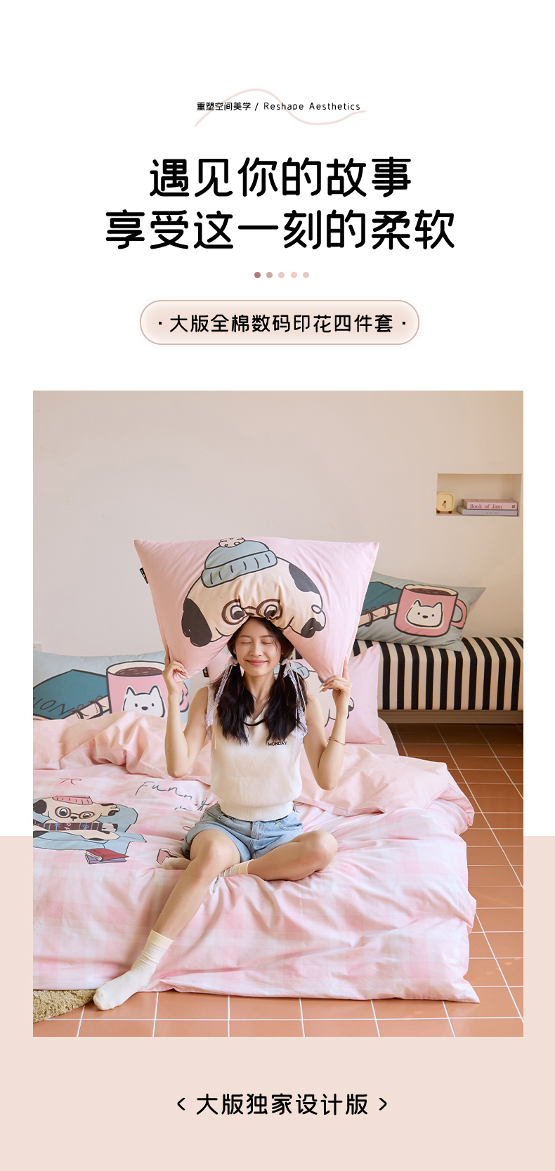 商品名称:RYB红黄兰 开学季2025新款ins设计师原创13372大版卡通数码印花40s全棉纯棉三件套四件套 美好假日