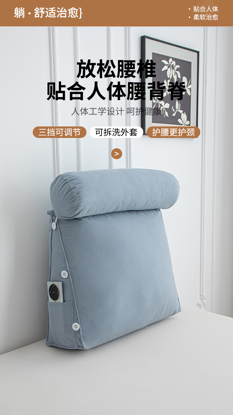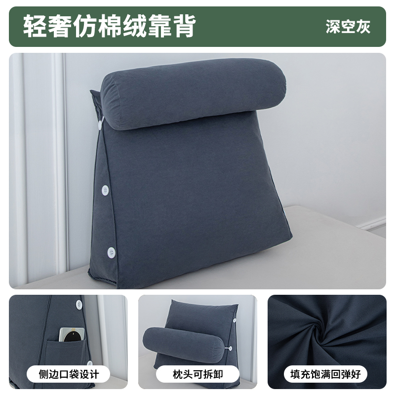 商品名称:沐沐家纺 2026新款仿棉绒三角靠背带头枕 烟灰蓝