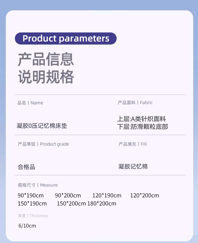 150x200cm 厚度10cm(8cm海绵+1cm记忆棉) | ¥215.00 |