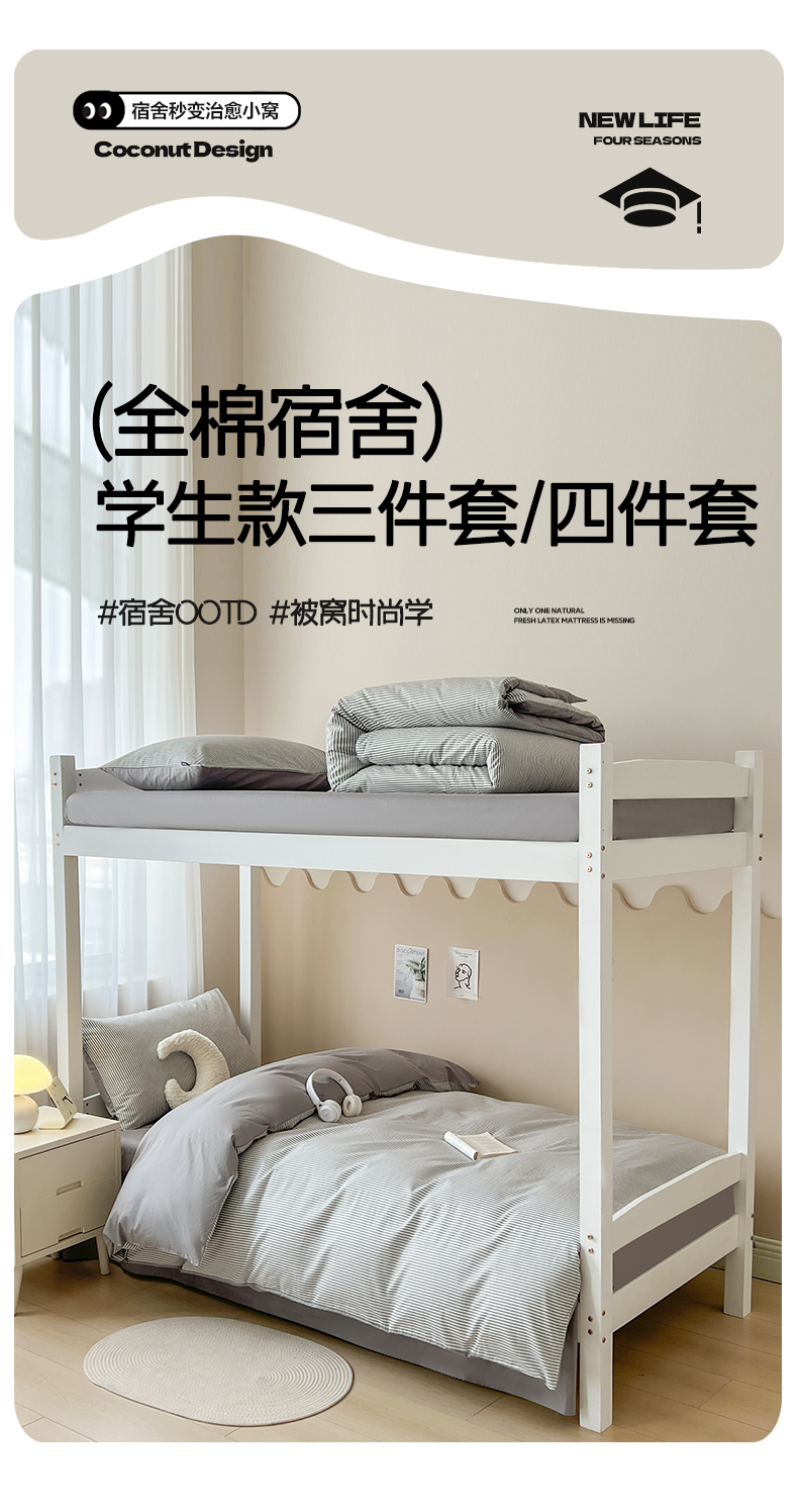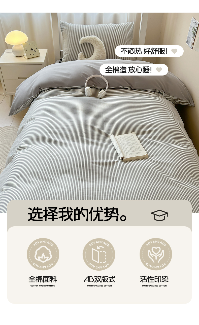 (总)涵宸2025新款全棉宿舍学生款三件套四件套