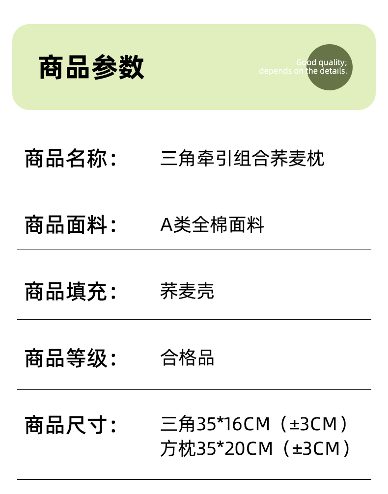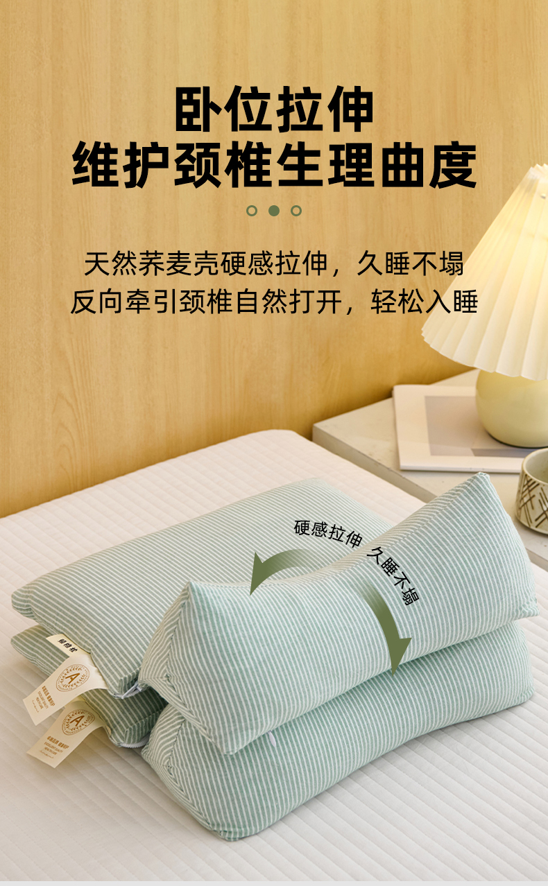 当前位置: 91家纺网 > 商品网购 > 枕头/枕芯/保健枕/颈椎枕 > 织布人 2025新款荞麦枕A类纯棉条纹无印风组合牵引颈椎枕头枕芯荞麦护颈枕芯 绿色 三角35x16cm 方枕35x20cm组合枕/只