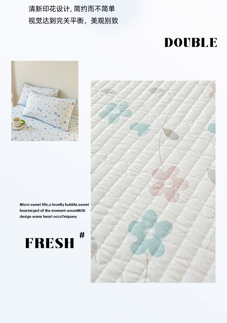 (总)橘夏家纺 2025新款热卖款韩国ins风小清新针织棉双层纱印花双面床盖,蝶恋花,小熊格子,心相印-灰色,浪漫小熊-灰色,浪漫小熊-兰色,心相印-绿色