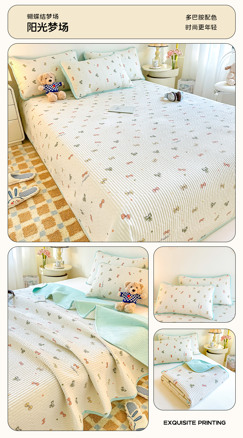 (总)橘夏家纺 2025新款热卖款韩国ins风小清新针织棉双层纱印花双面床盖,蝶恋花,小熊格子,心相印-灰色,浪漫小熊-灰色,浪漫小熊-兰色,心相印-绿色