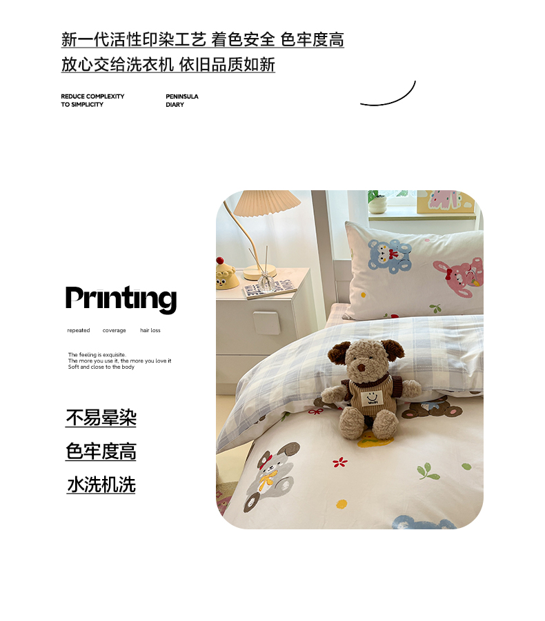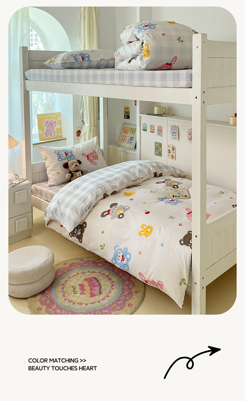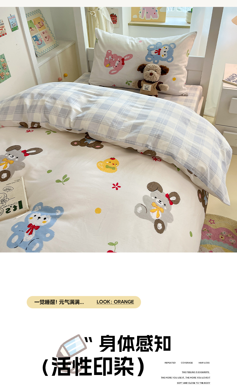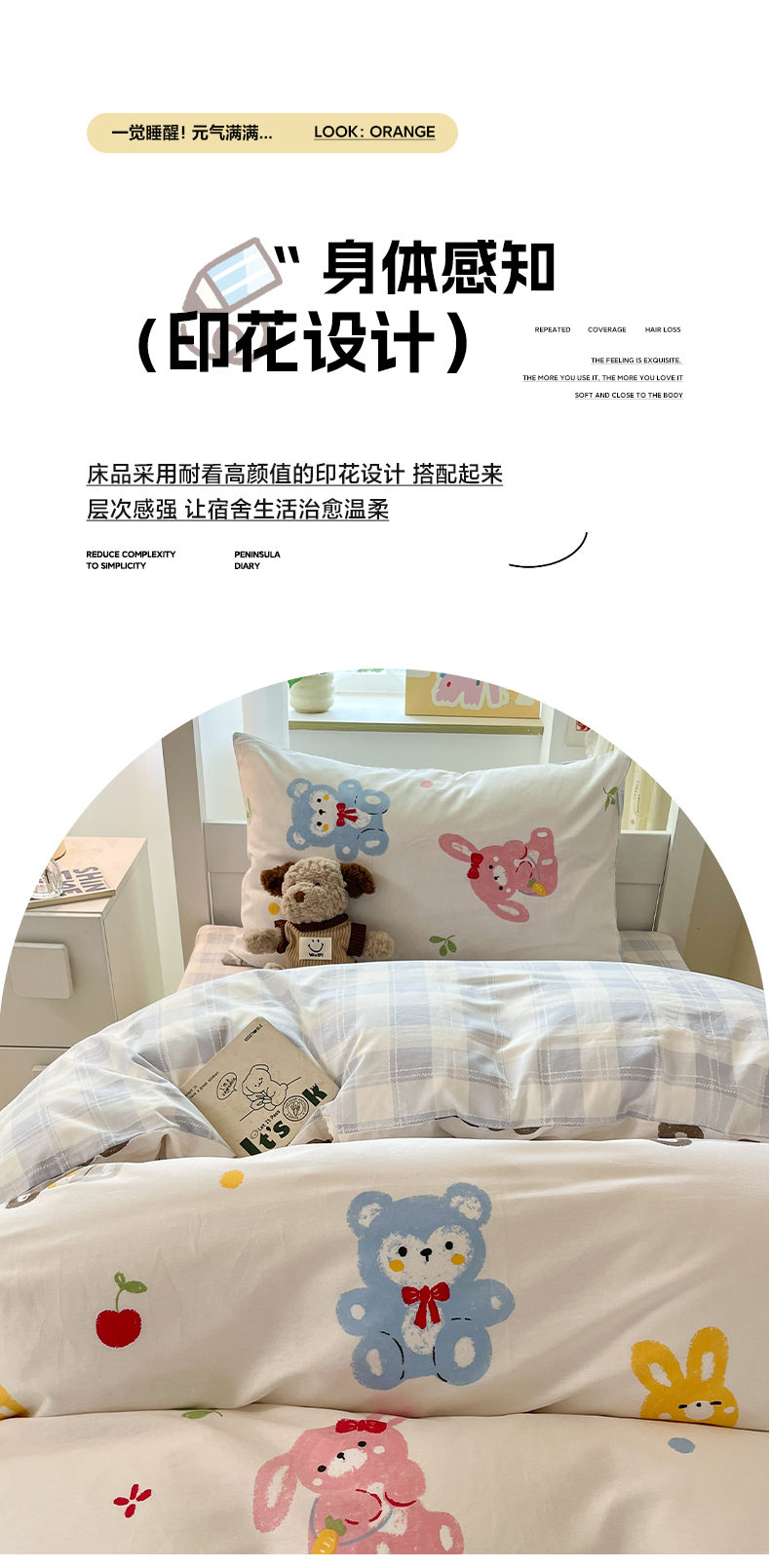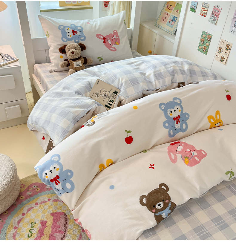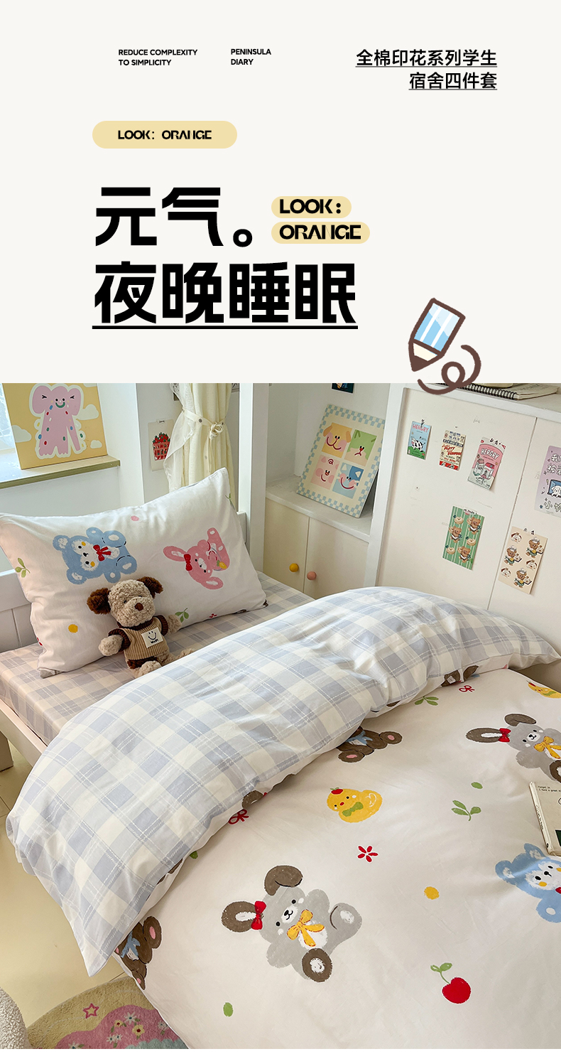 当前位置: 91家纺网 > 商品网购 > 床品套件 > 三件套 > 雅居纺家纺 2025新款全棉纯棉印花系列学生宿舍三四件套上下铺三件套 兔兔跟熊