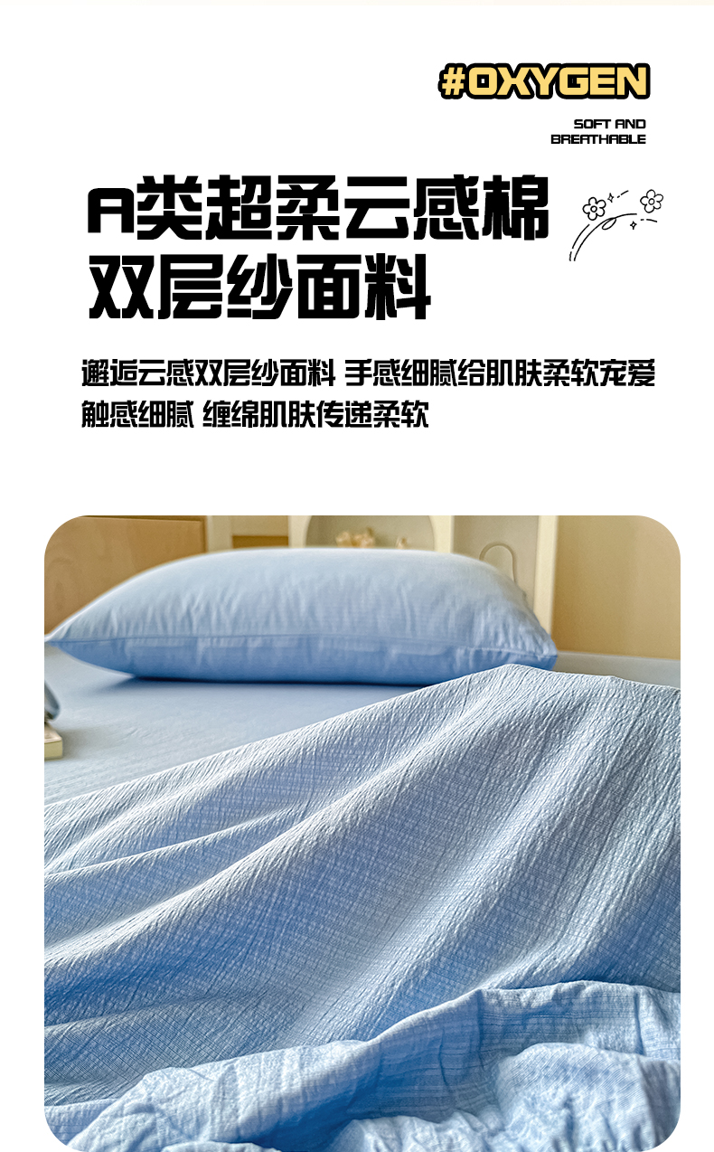 当前位置: 91家纺网 > 商品网购 > 床上用品 > 床笠 > 卡迪熊家纺 2025新款超柔云感双层纱床笠 双层纱-天蓝