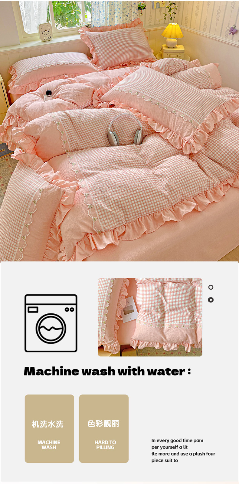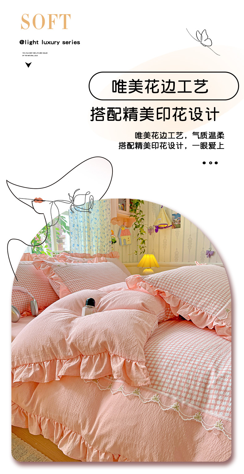 (总)娜娜 2026新款A类云朵锦花边四件套,动物世界-雾蓝,满天星-豆沙,满天星-浅紫,小雏菊-浅绿,小雏菊-玉色,樱花粉
