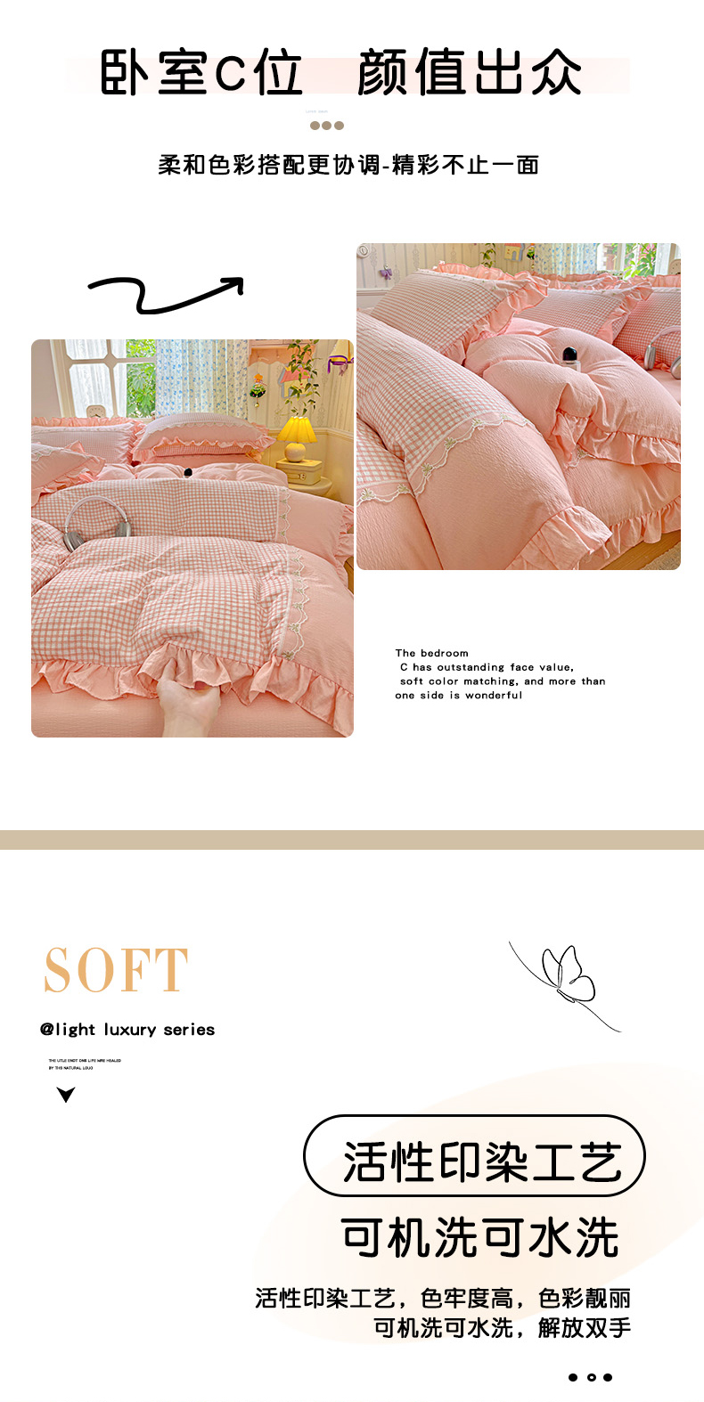 商品名称:娜娜 2025新款云感双层纱四件套 花格色谱