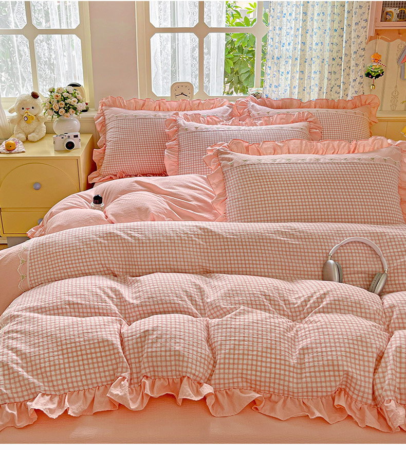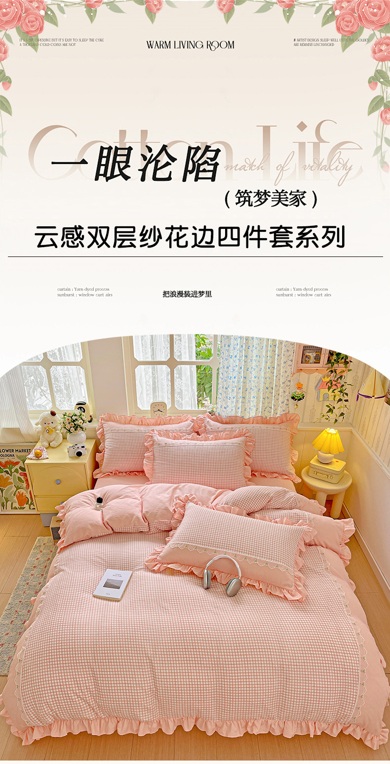 娜娜 2025新款云感双层纱四件套 花格色谱