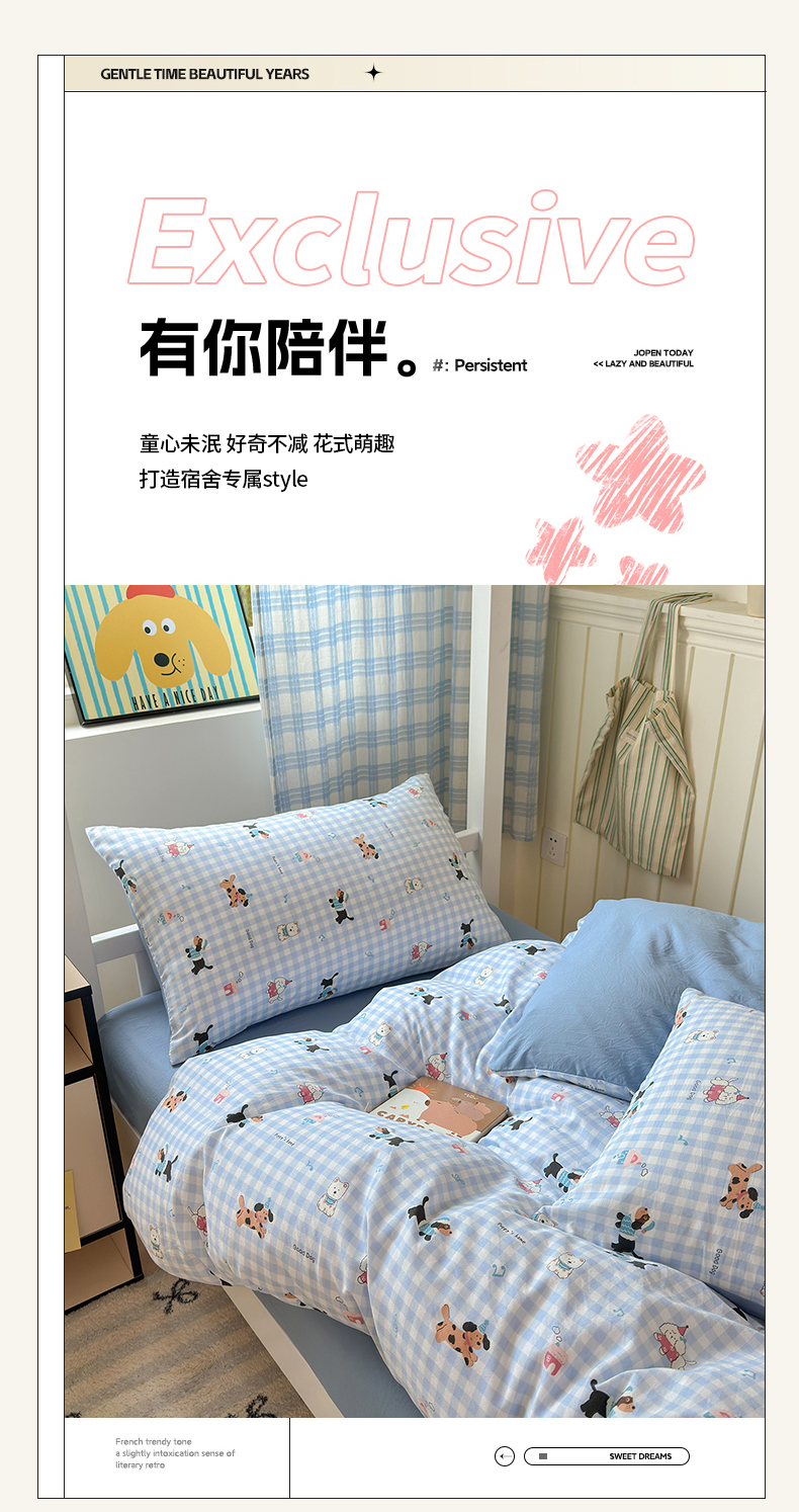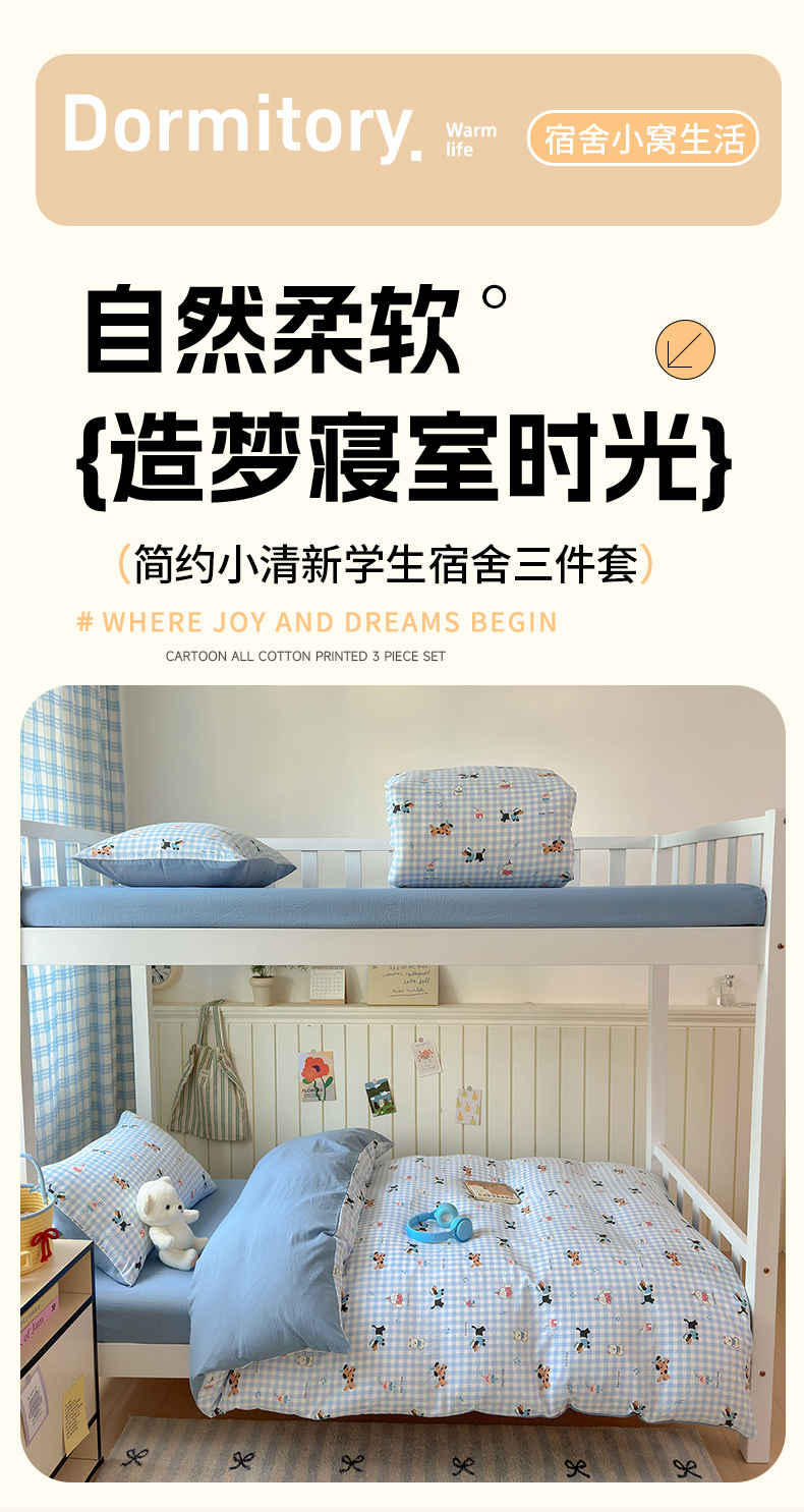 当前位置: 91家纺网 > 商品网购 > 床品套件 > 三件套 > 沐芷 2025 开学季学生宿舍三件套 水洗棉四件套被套床单 汪星蓝町