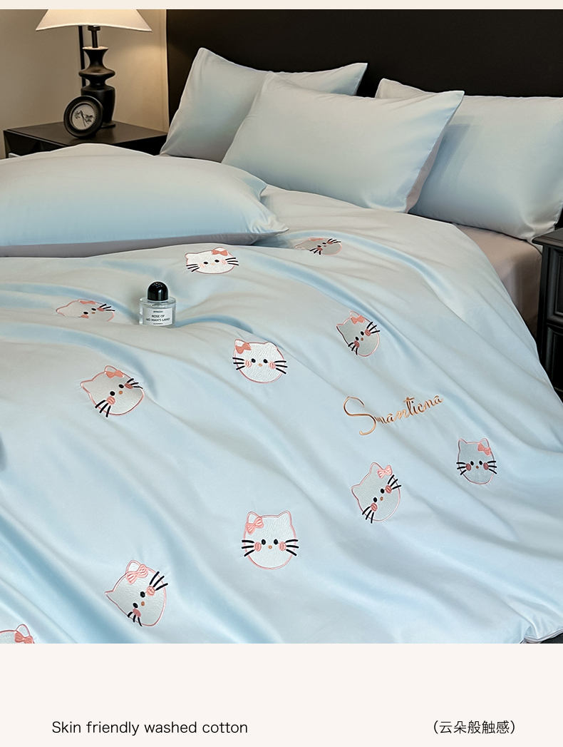当前位置: 91家纺网 > 商品网购 > 床品套件 > 四件套 > 水洗棉四件套 > 小久久(小九九) 2025新款亲肤水洗棉刺绣满绣四件套 可爱猫-天蓝+山灰