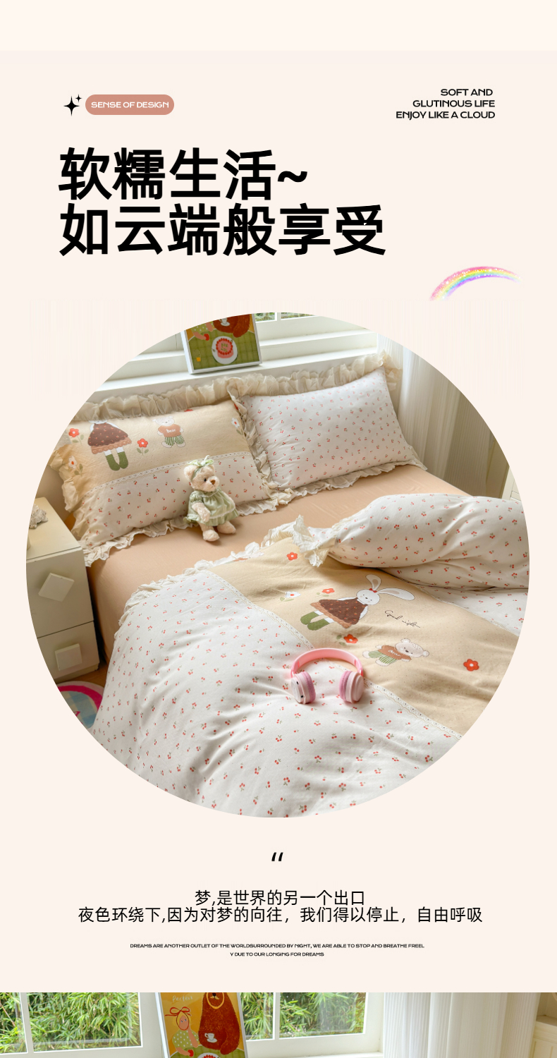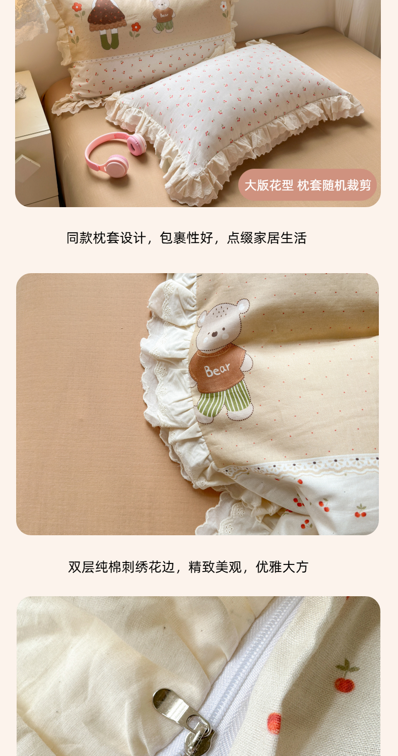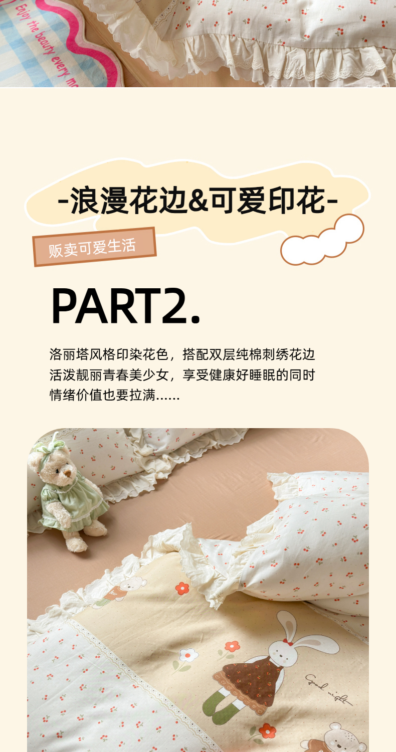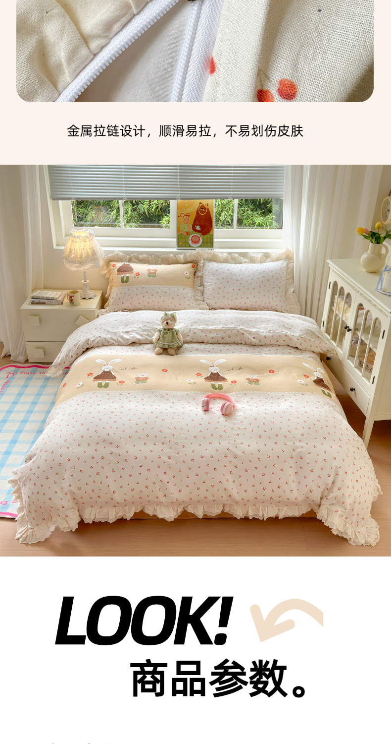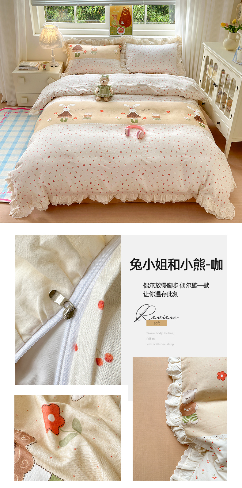 当前位置: 91家纺网 > 商品网购 > 床品套件 > 四件套 > 双层纱四件套 > 淑女公社家纺 2025新款全棉双层纱四季款洛丽塔风格四件套 兔小姐和小熊咖