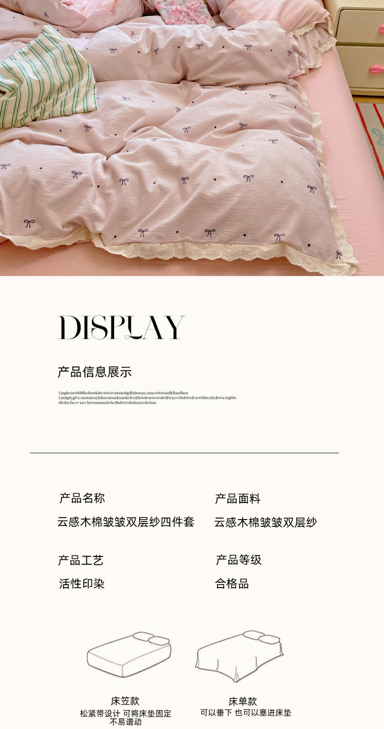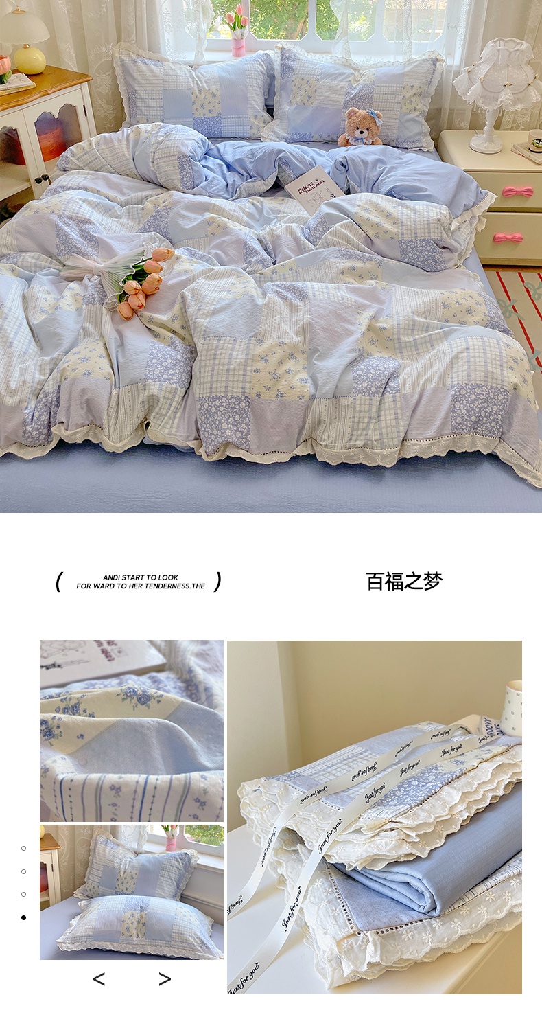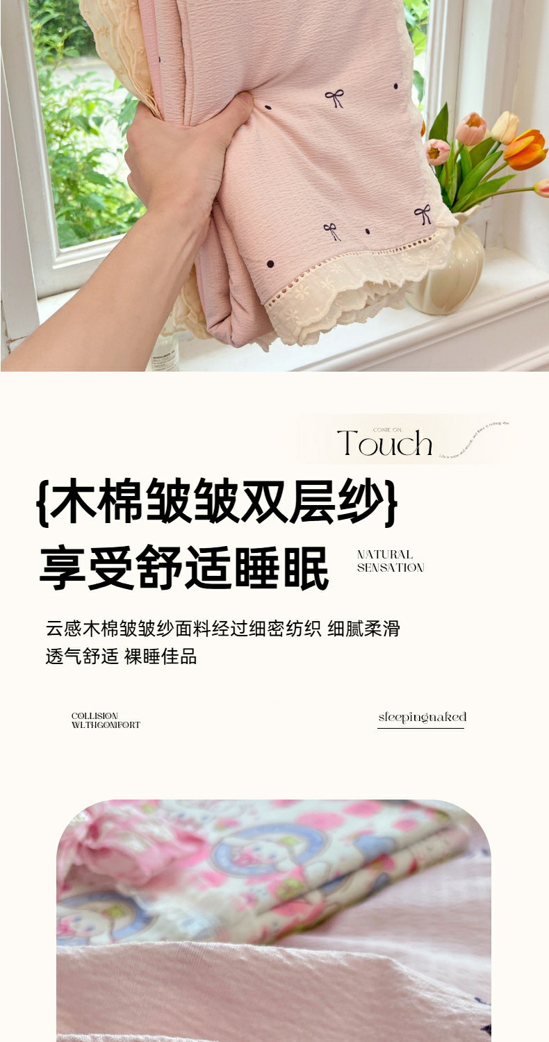 当前位置: 91家纺网 > 商品网购 > 床品套件 > 四件套 > 全棉普通四件套 > 优佳优品 2025新款A类云感木棉皱皱双层纱全棉镂空花边四件套(提供买家秀) 同心结