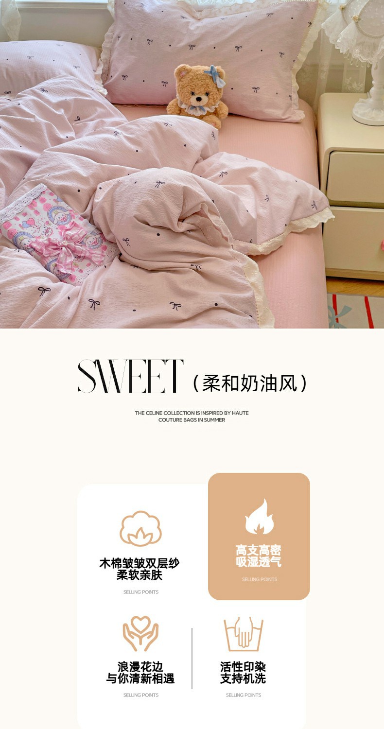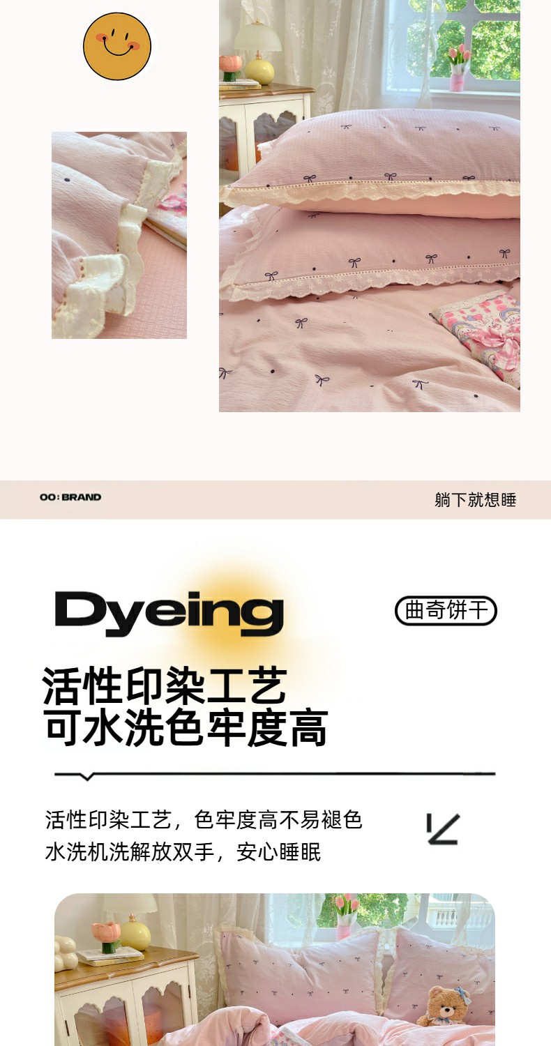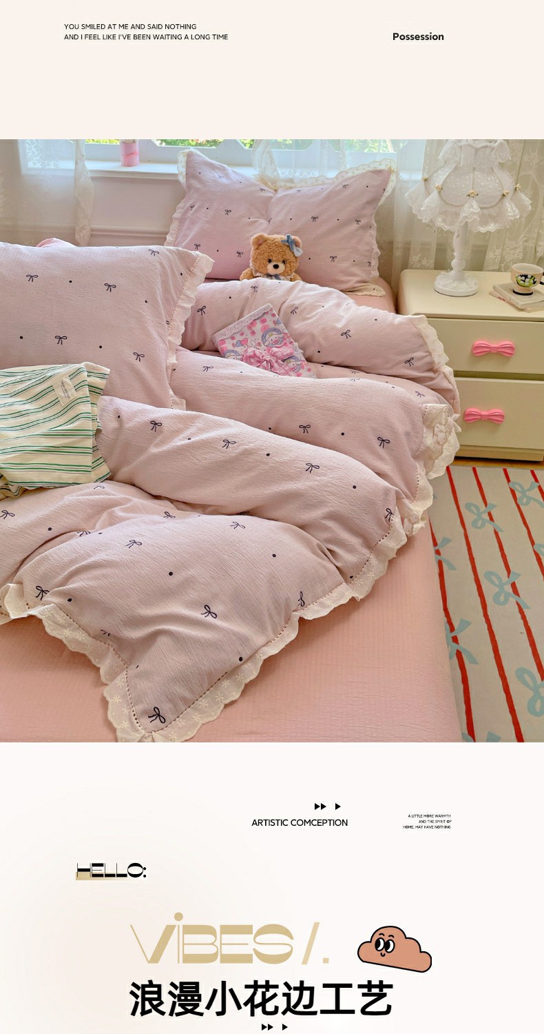当前位置: 91家纺网 > 商品网购 > 床品套件 > 四件套 > 全棉普通四件套 > 优佳优品 2025新款A类云感木棉皱皱双层纱全棉镂空花边四件套(提供买家秀) 同心结