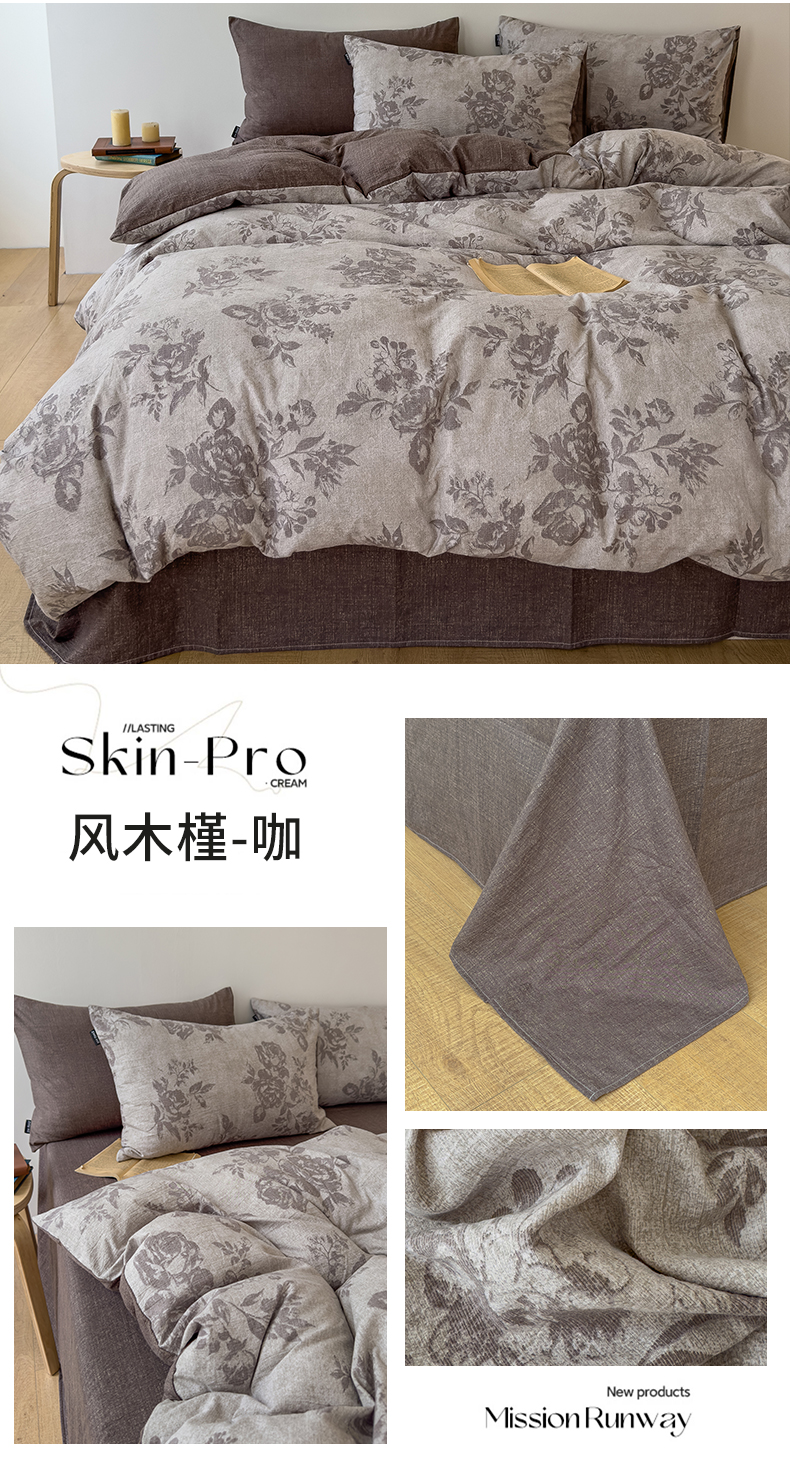 商品名称:竹合家纺 2025秋冬新品爆款加厚高克重复古风皱皱印花四件套 风木瑾-咖