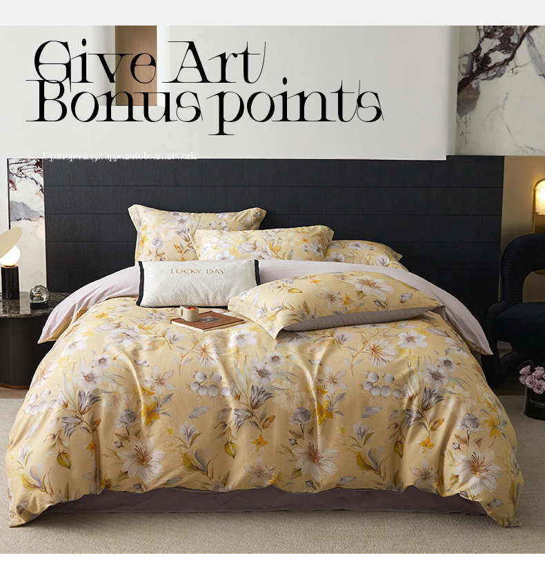 绒棉世家 2025新款60贡缎数码印花长绒棉全棉四件套 远黛灰