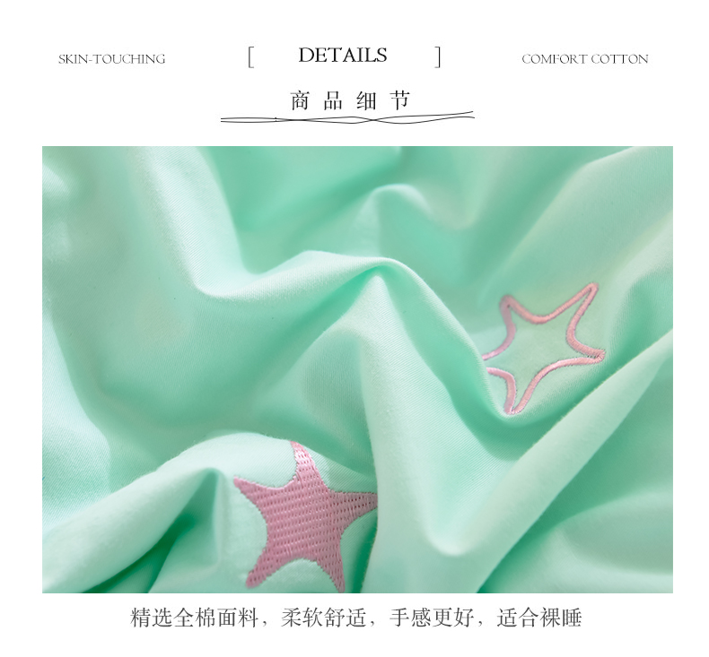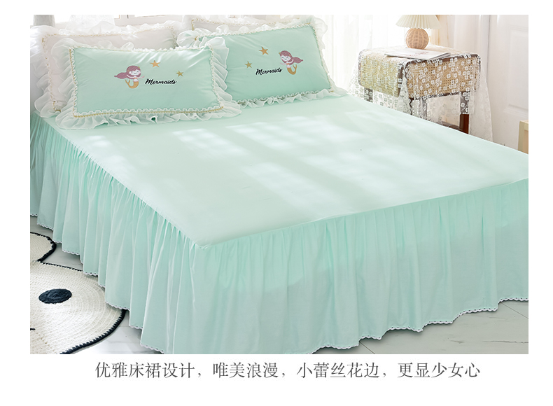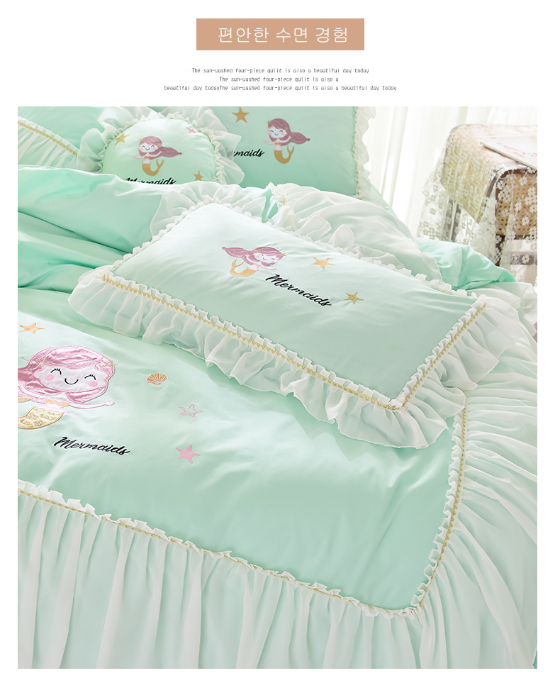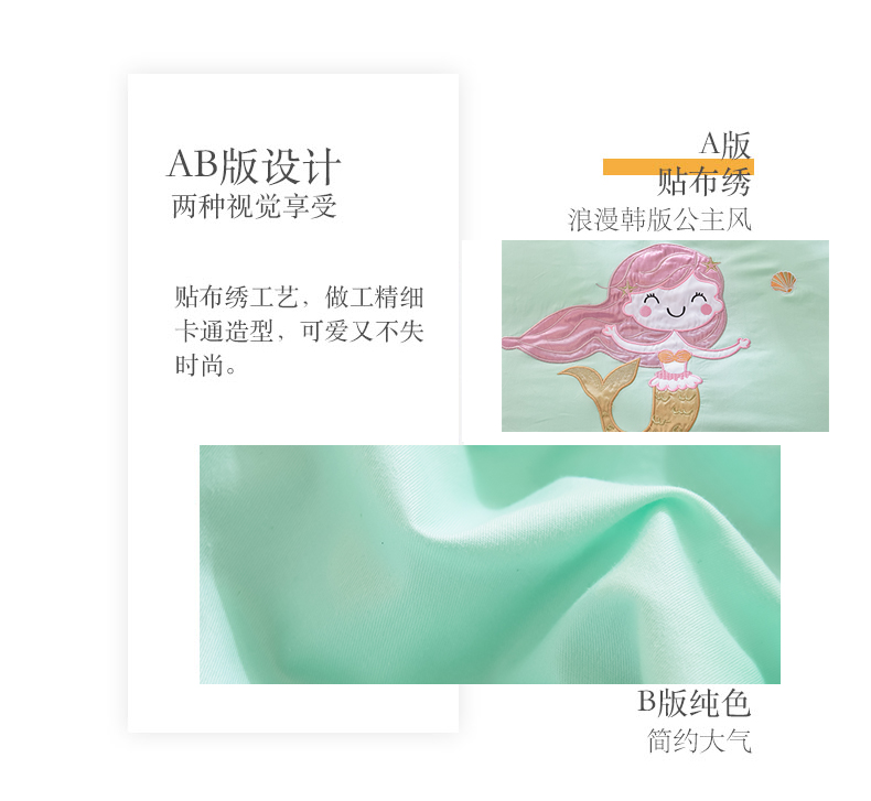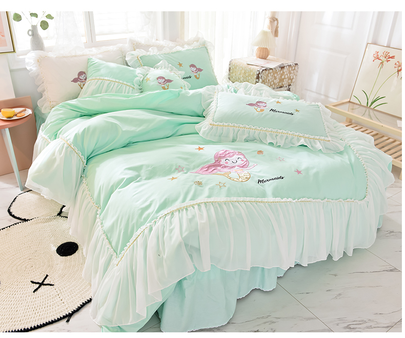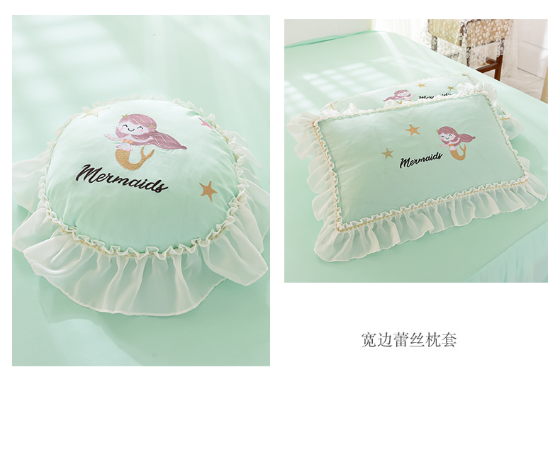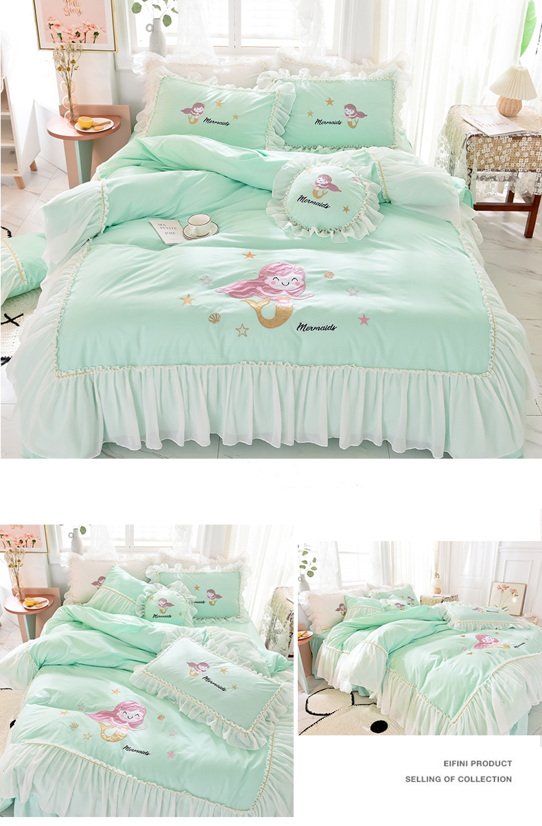 商品名称:花香四季家纺 2025新款13376纯棉贴布刺绣雪纺纱四件套-人鱼小姐 人鱼小姐绿