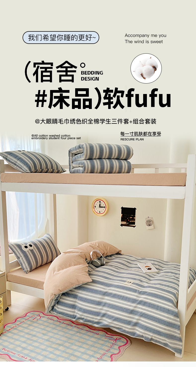 商品名称:(总)2025新款眼睛毛巾绣色织全棉100%棉学生三件套宿舍上下铺六件套大礼包组合套装