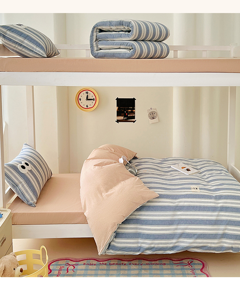 (总)2024新款学生季色织全棉三件套夏天宿舍上下铺学生六件套 ,米娅蓝灰,罗拉寻梦蓝,暧芙湖蓝,维多利亚紫,素色风尚绿,素色风尚灰,素色风尚蓝,黄小格,黑中格,粉小格,波西米亚绿,巴莉灰橘
