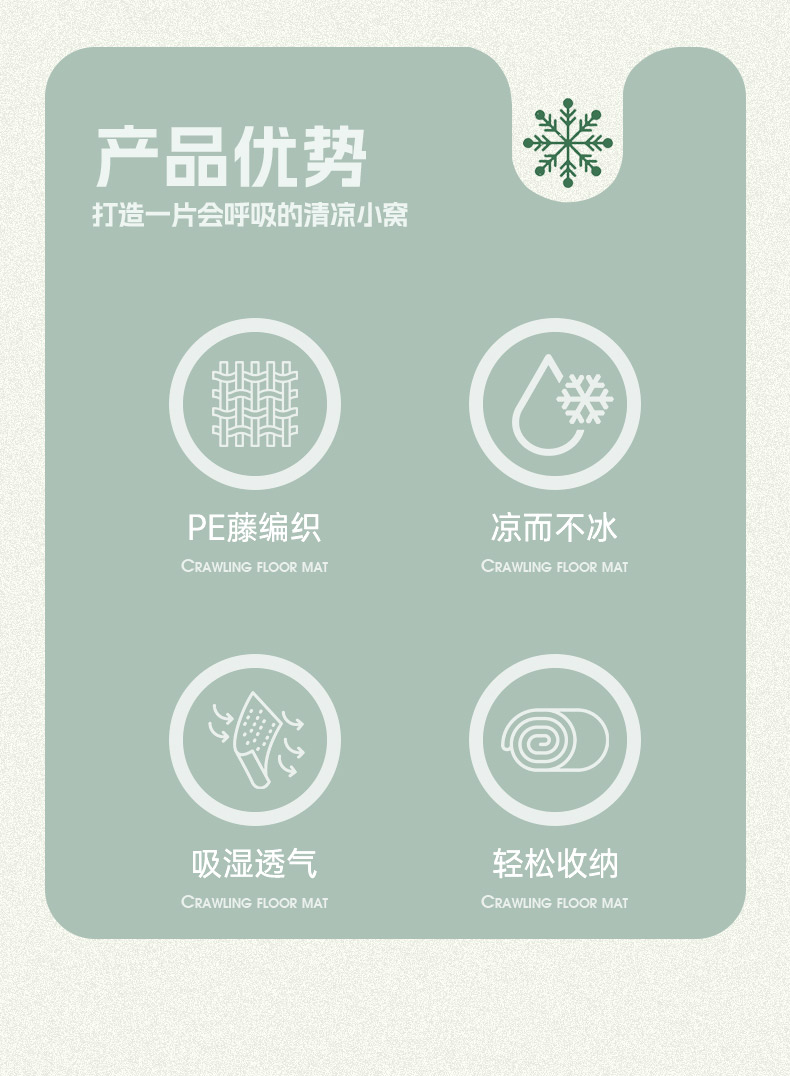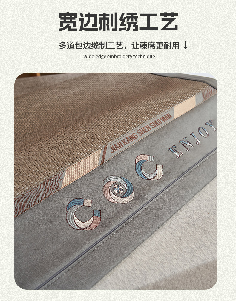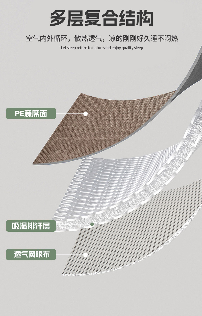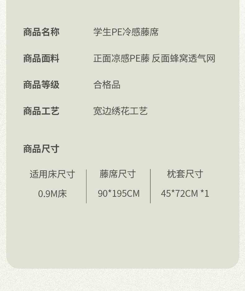 商品名称:鑫琪莱家纺 2025新款学生PE凉感藤席 典雅贡藤-灰