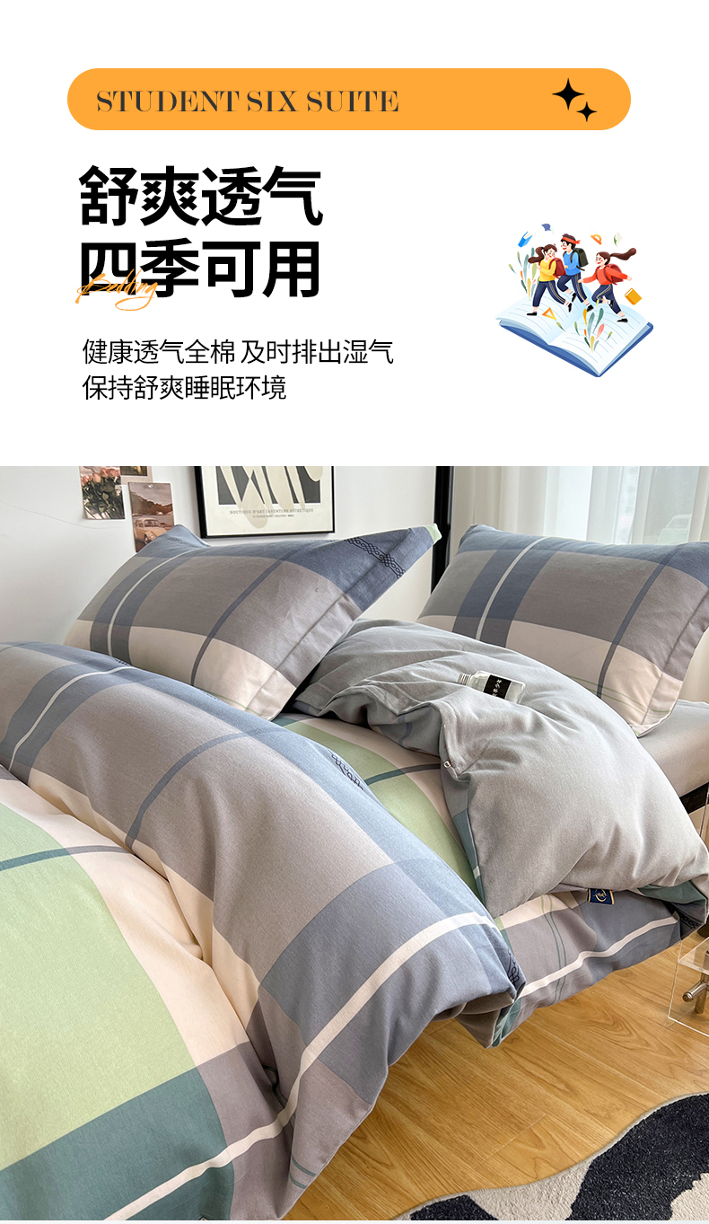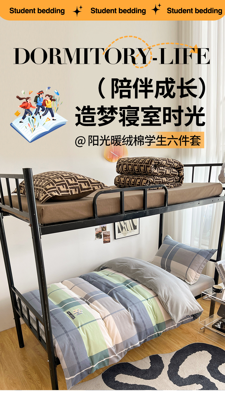 当前位置: 91家纺网 > 商品网购 > 床品套件 > 三件套 > 慕木家纺 2025新款A类高端无印风卡通高克重170克阳光暖绒棉学生套件系列(可供跨境抽空压缩) 协奏曲-绿