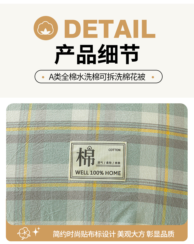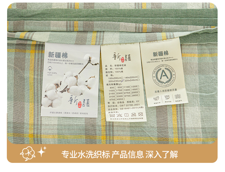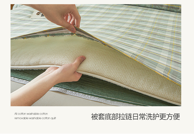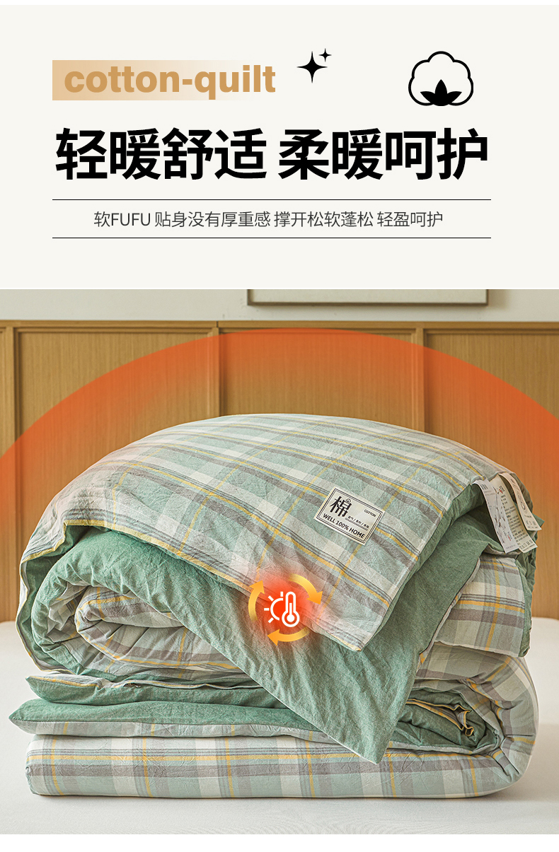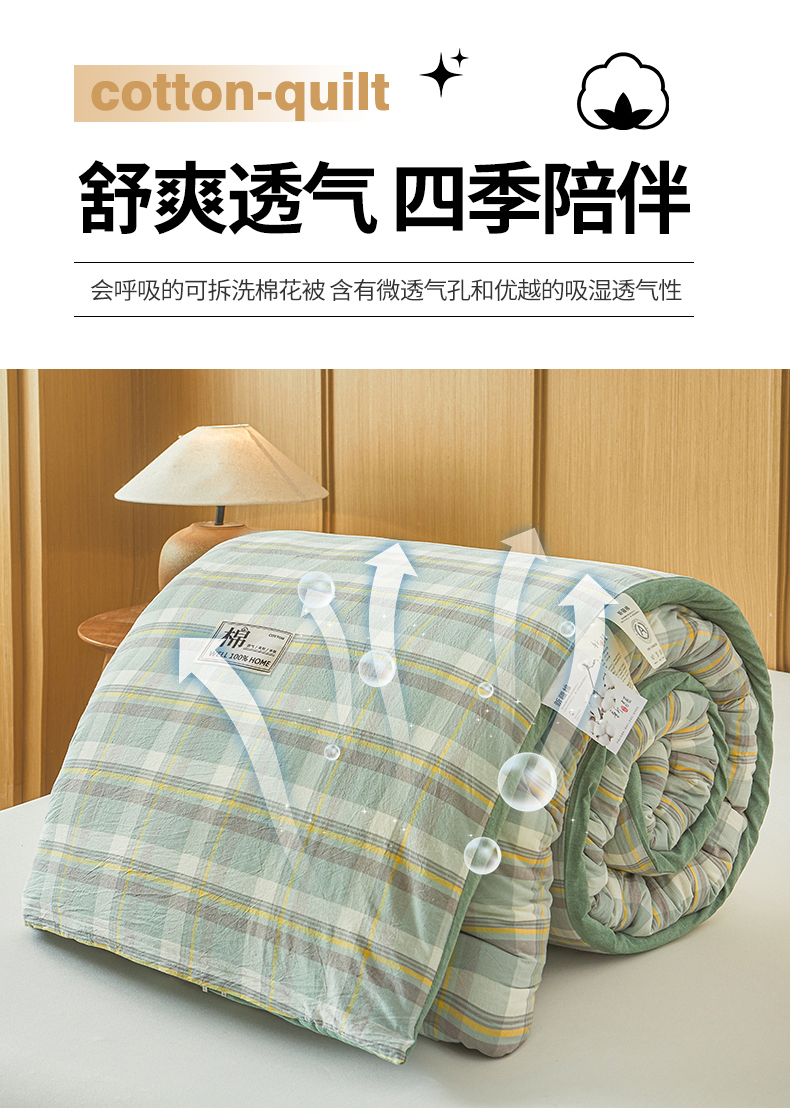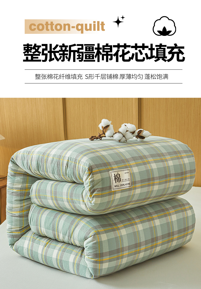 • 91家纺网 家纺一手货源 找家纺 西域种棉人·千百笠 2025新款A类可拆卸里外全棉100%新疆棉花被子冬被全棉单人学生宿舍加厚保暖春 雅致绿格