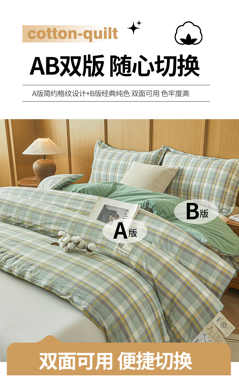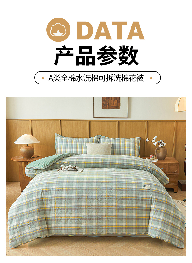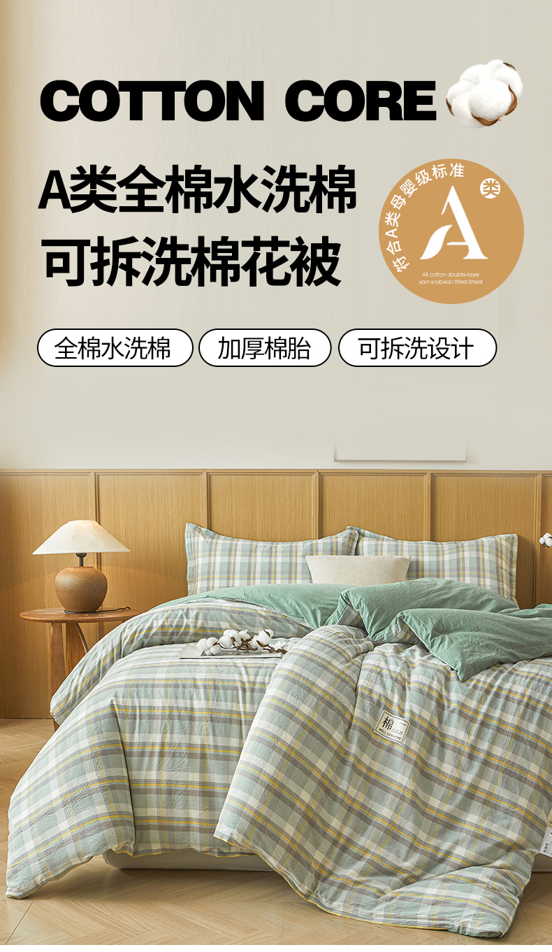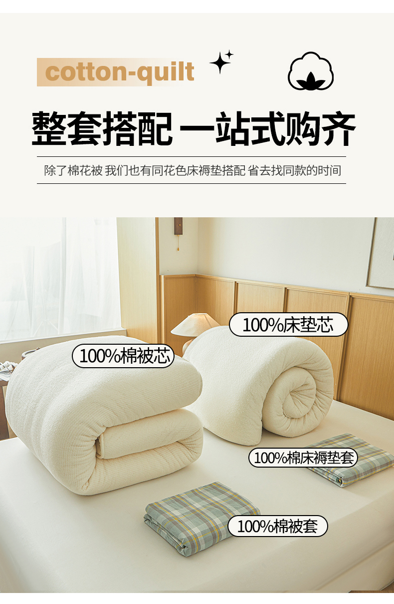 • 91家纺网 家纺一手货源 找家纺 西域种棉人·千百笠 2025新款A类可拆卸里外全棉100%新疆棉花被子冬被全棉单人学生宿舍加厚保暖春 雅致绿格