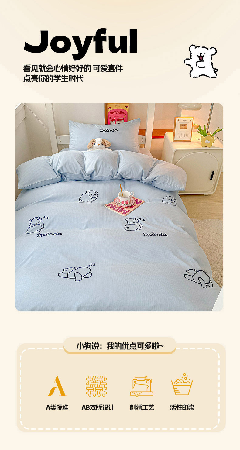 当前位置: 91家纺网 > 商品网购 > 床品套件 > 三件套 > 多乐家纺 2025新款超柔A类母婴级加厚小竺棉学生宿舍三件套上下铺三件套四件套 Panda-蓝