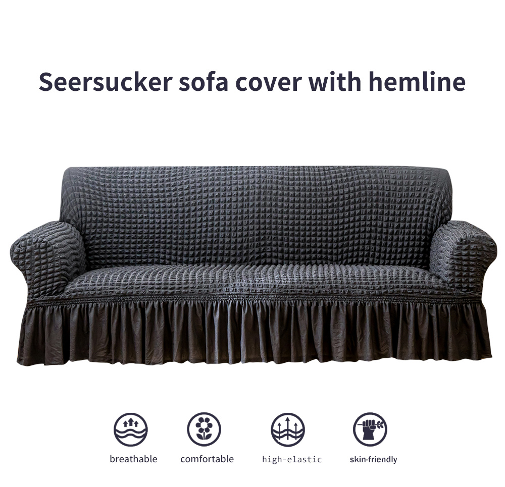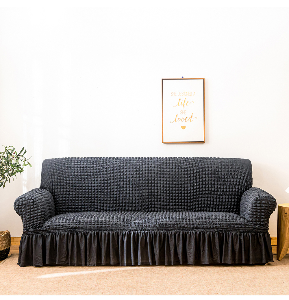 商品名称:布兰鸟【沙发套】 2025新款泡泡沙发套【英文裙摆款】三人沙发风格 单色深灰