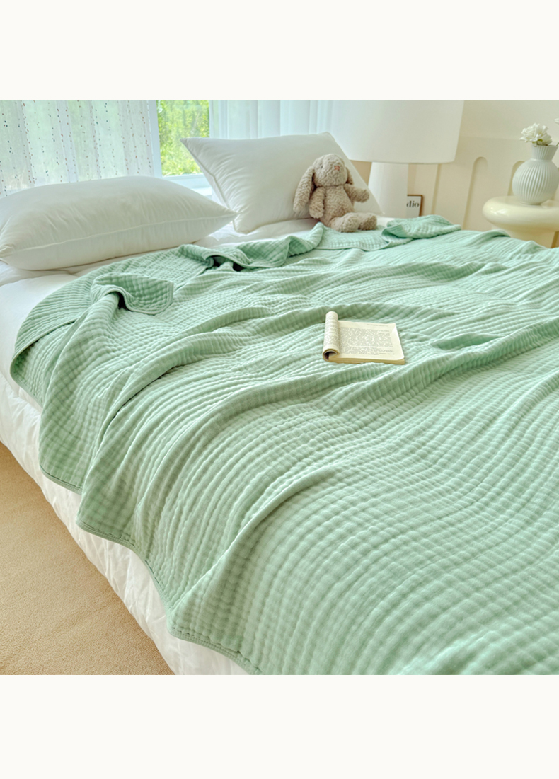 棠薇家纺 2025新款A类日韩无印风泡泡纱六层素色纯色盖毯毛巾被夏被皱皱毯婴幼毯浴巾 泡泡纱豆绿