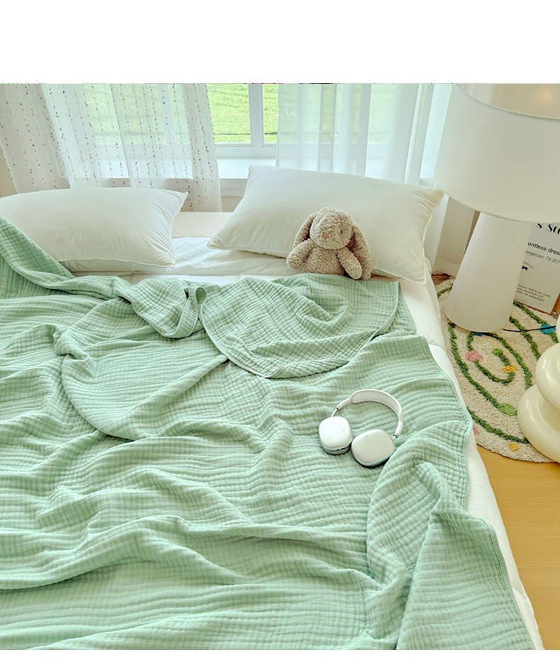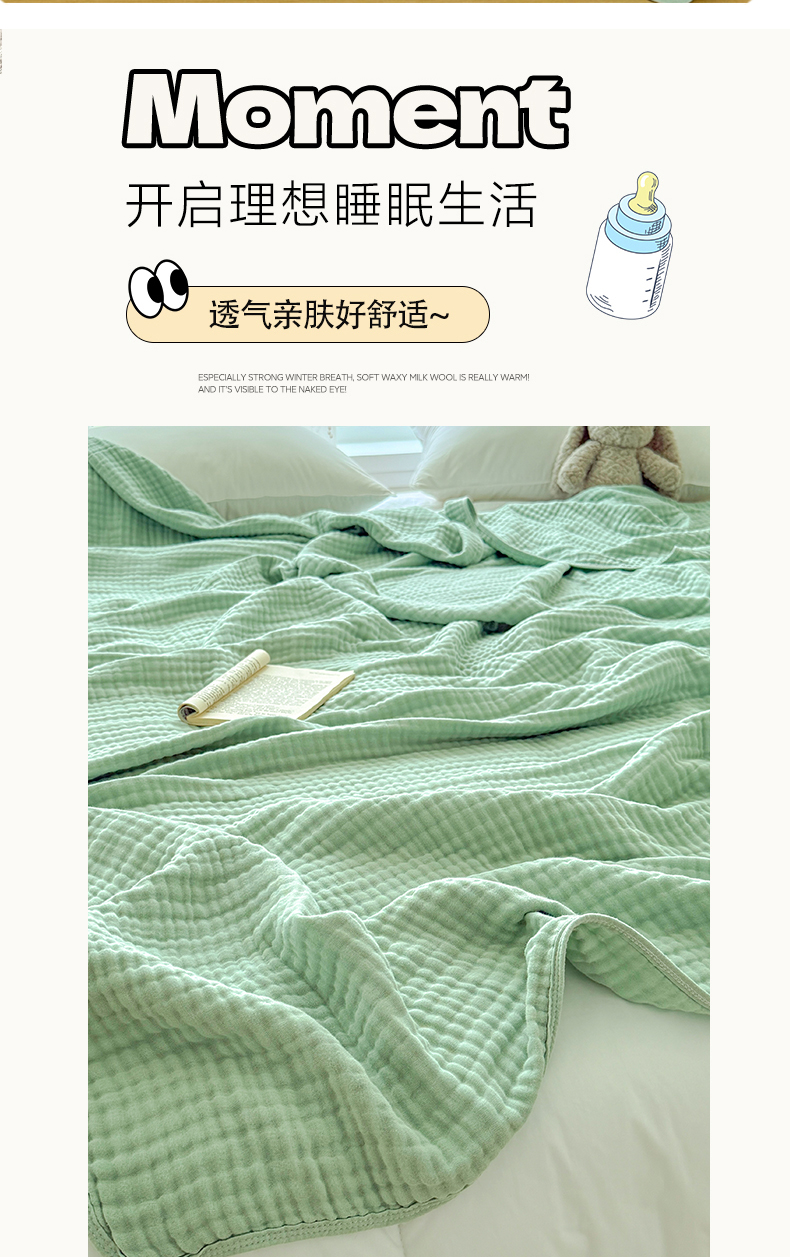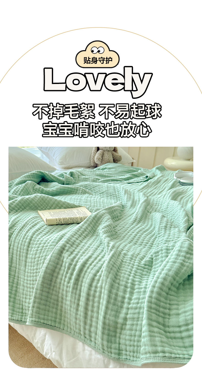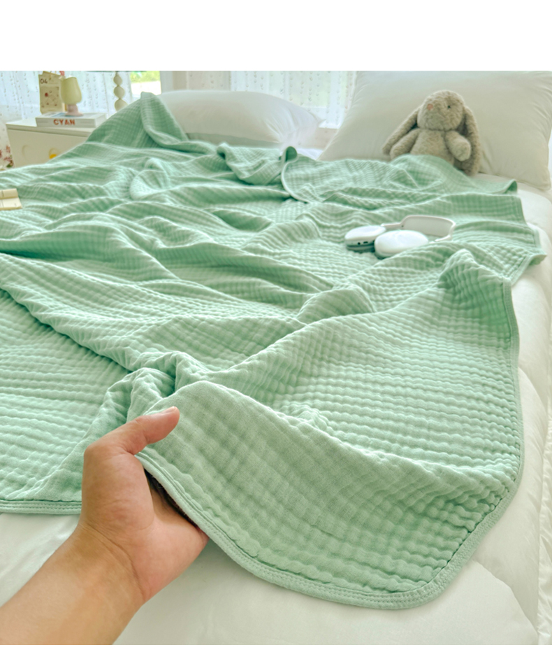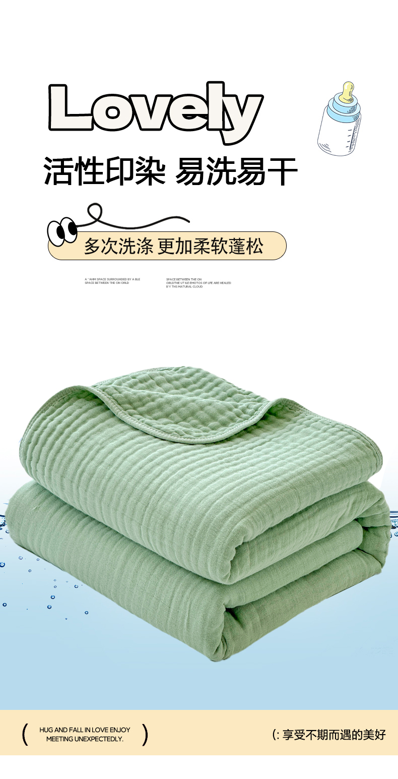 商品名称:棠薇家纺 2025新款A类日韩无印风泡泡纱六层素色纯色盖毯毛巾被夏被皱皱毯婴幼毯浴巾 泡泡纱豆绿