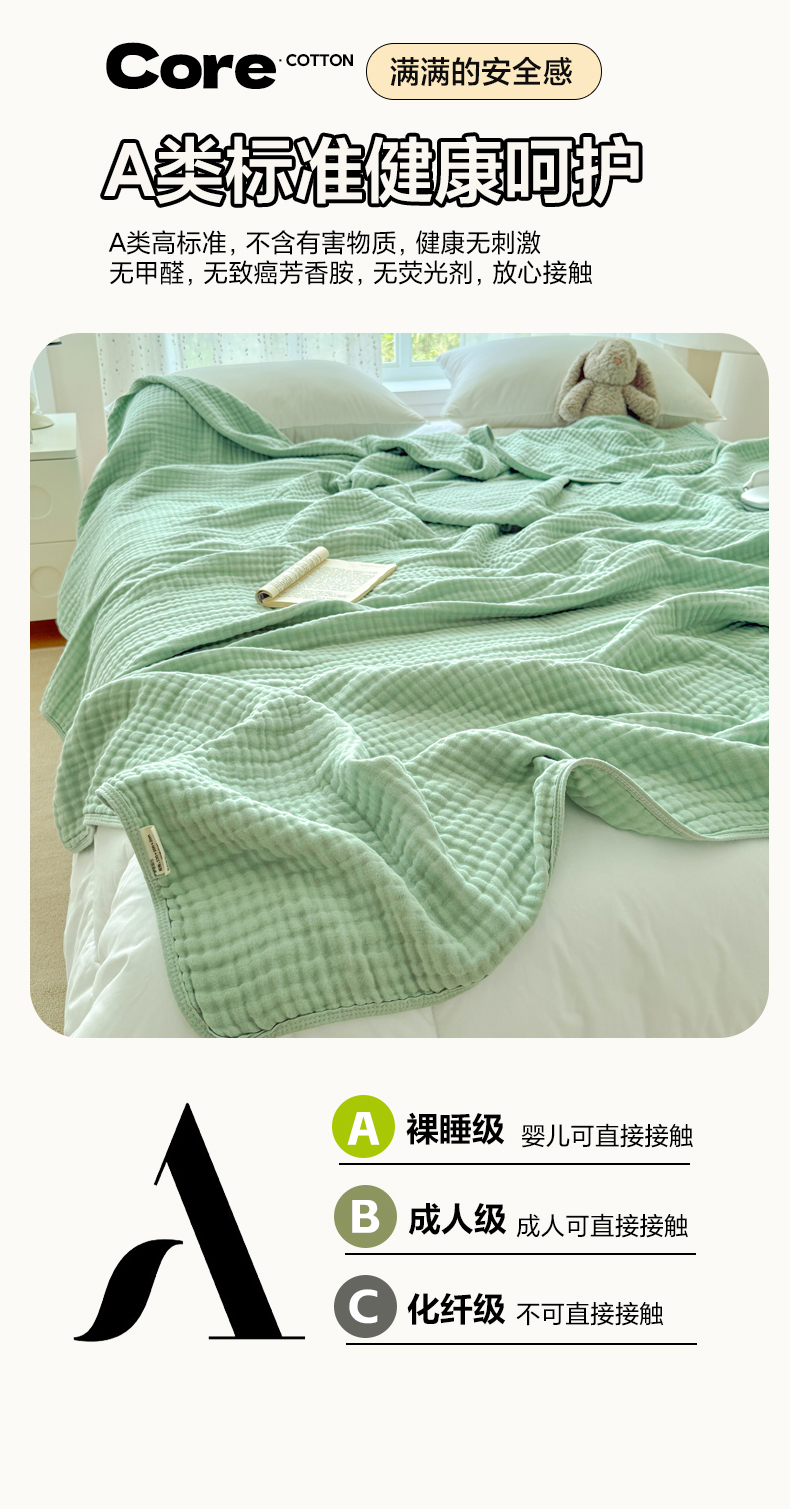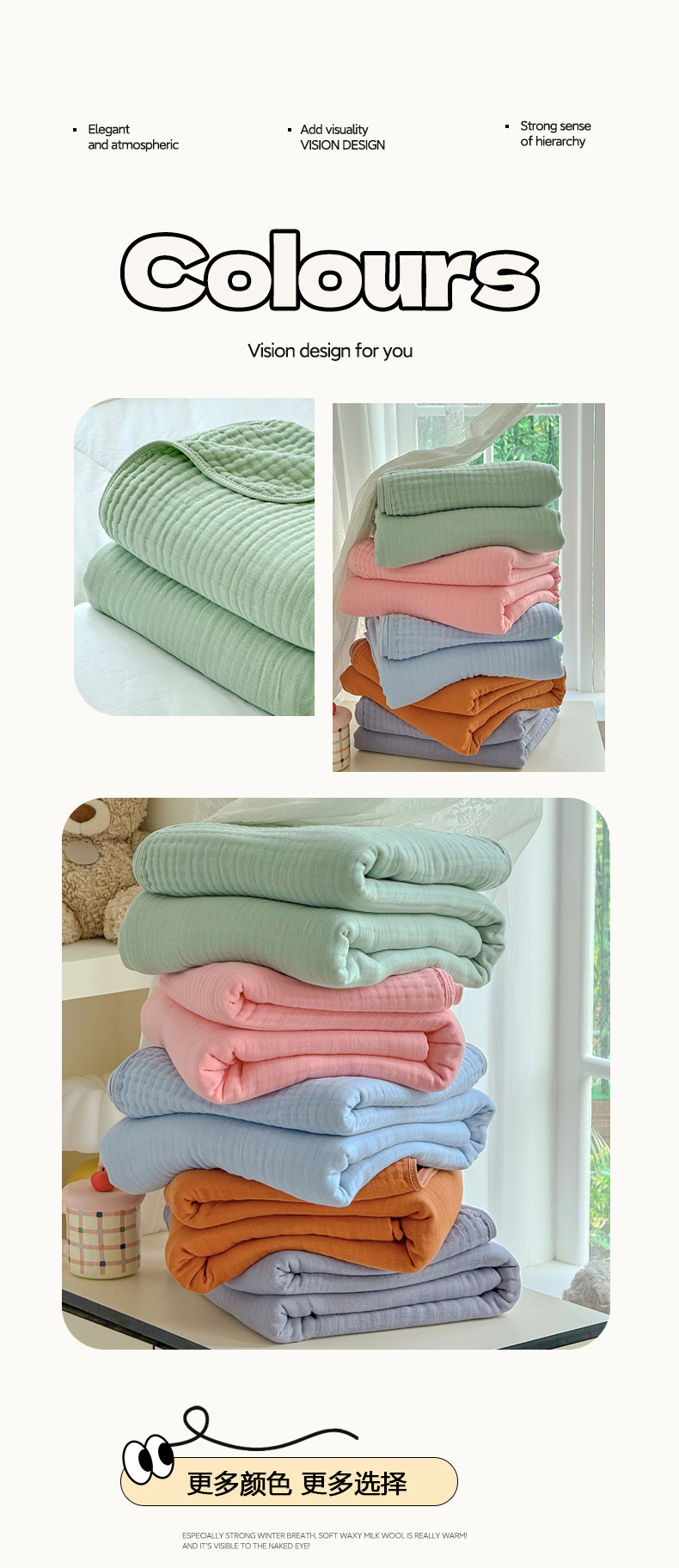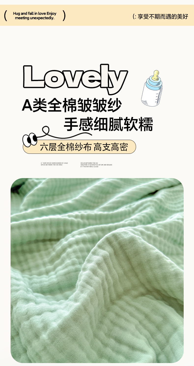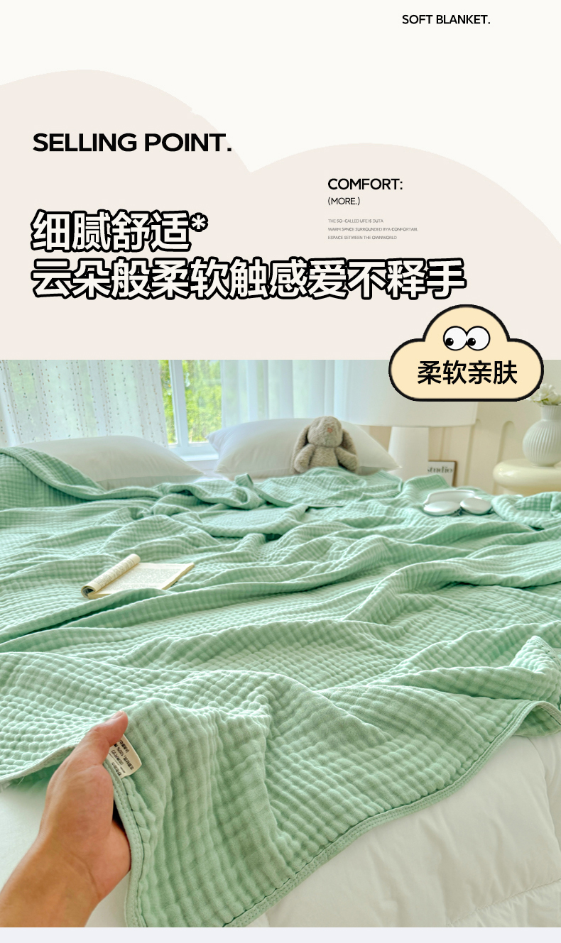 商品名称:棠薇家纺 2025新款A类日韩无印风泡泡纱六层素色纯色盖毯毛巾被夏被皱皱毯婴幼毯浴巾 泡泡纱豆绿