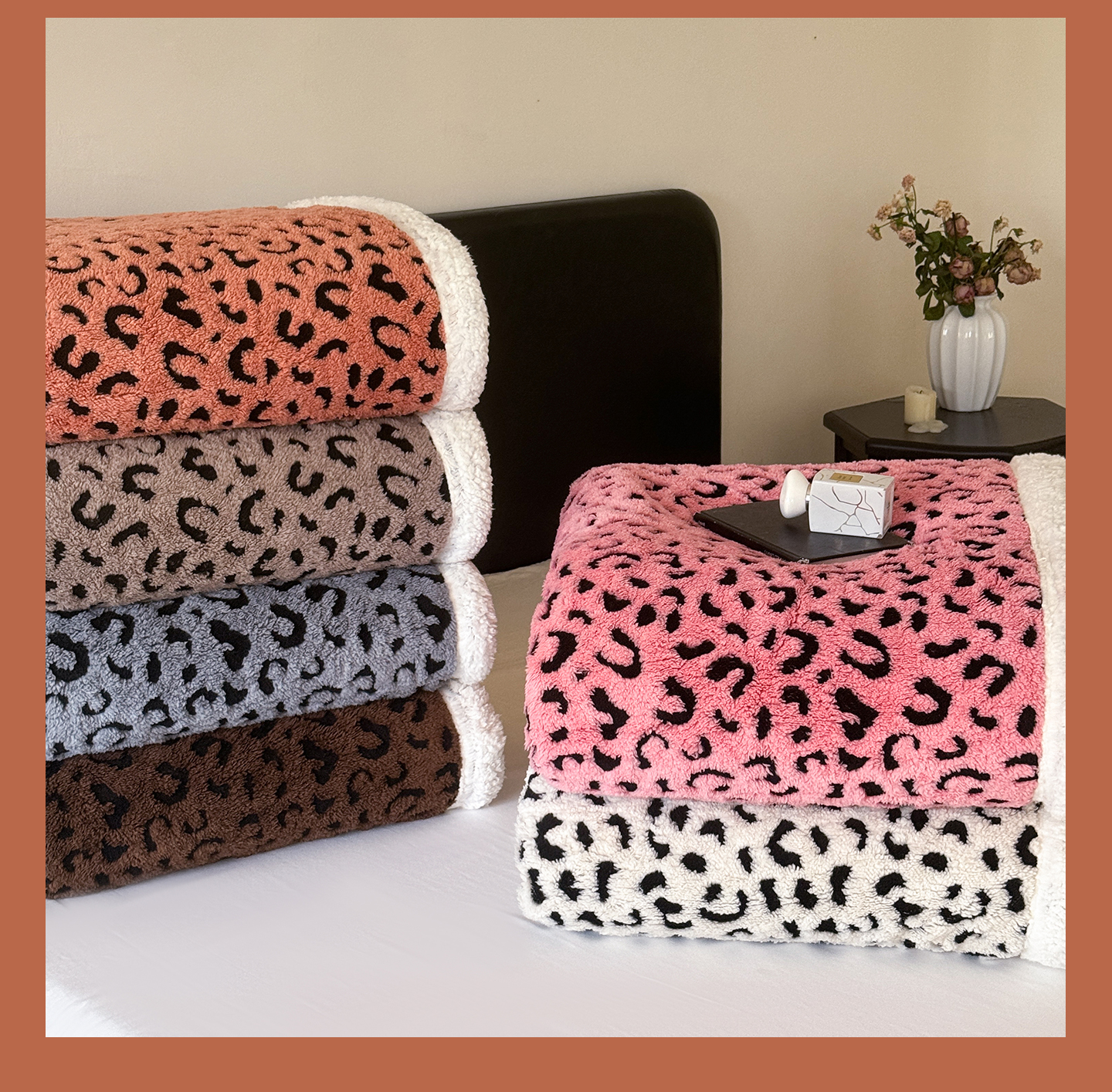 (总)丹本家纺 2025新款双层阳离子提花塔芙绒羊羔绒跨境双层毛毯盖毯毯子,豹纹白,豹纹粉,豹纹灰,豹纹橘,豹纹咖,豹纹驼