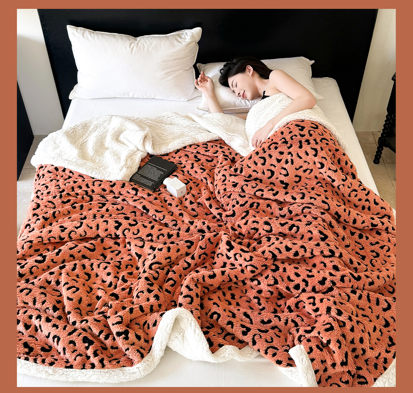 丹本家纺 2025新款双层阳离子提花塔芙绒羊羔绒跨境双层毛毯盖毯毯子 豹纹橘