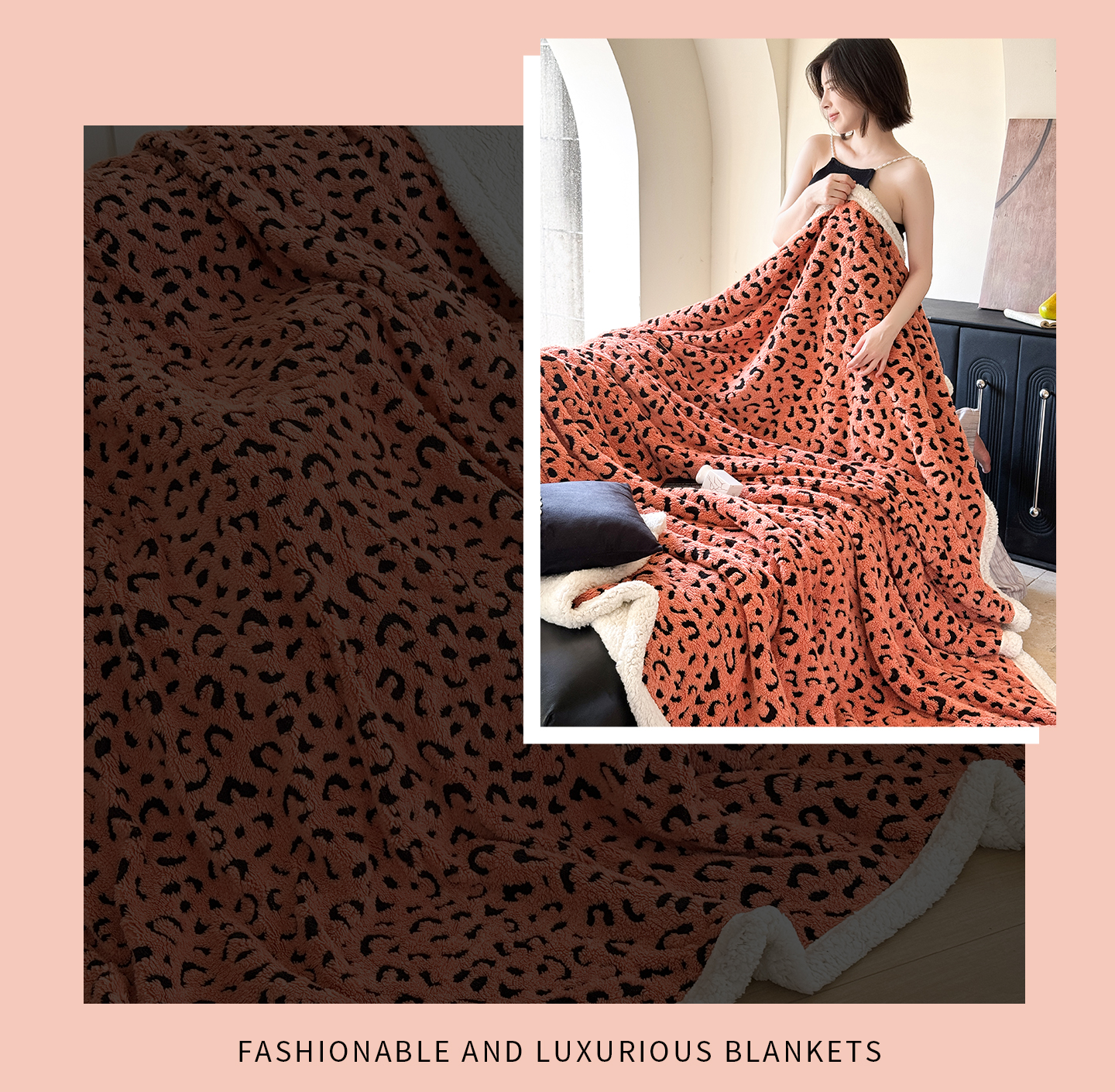 商品名称:丹本家纺 2025新款双层阳离子提花塔芙绒羊羔绒跨境双层毛毯盖毯毯子 豹纹橘