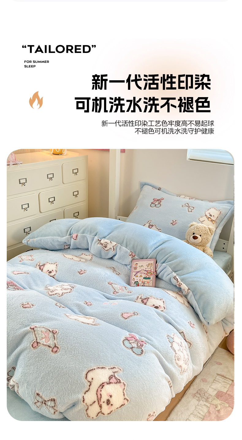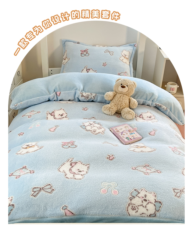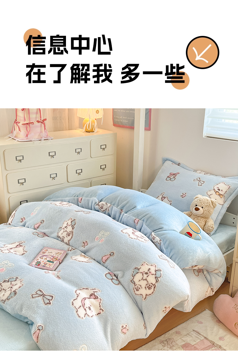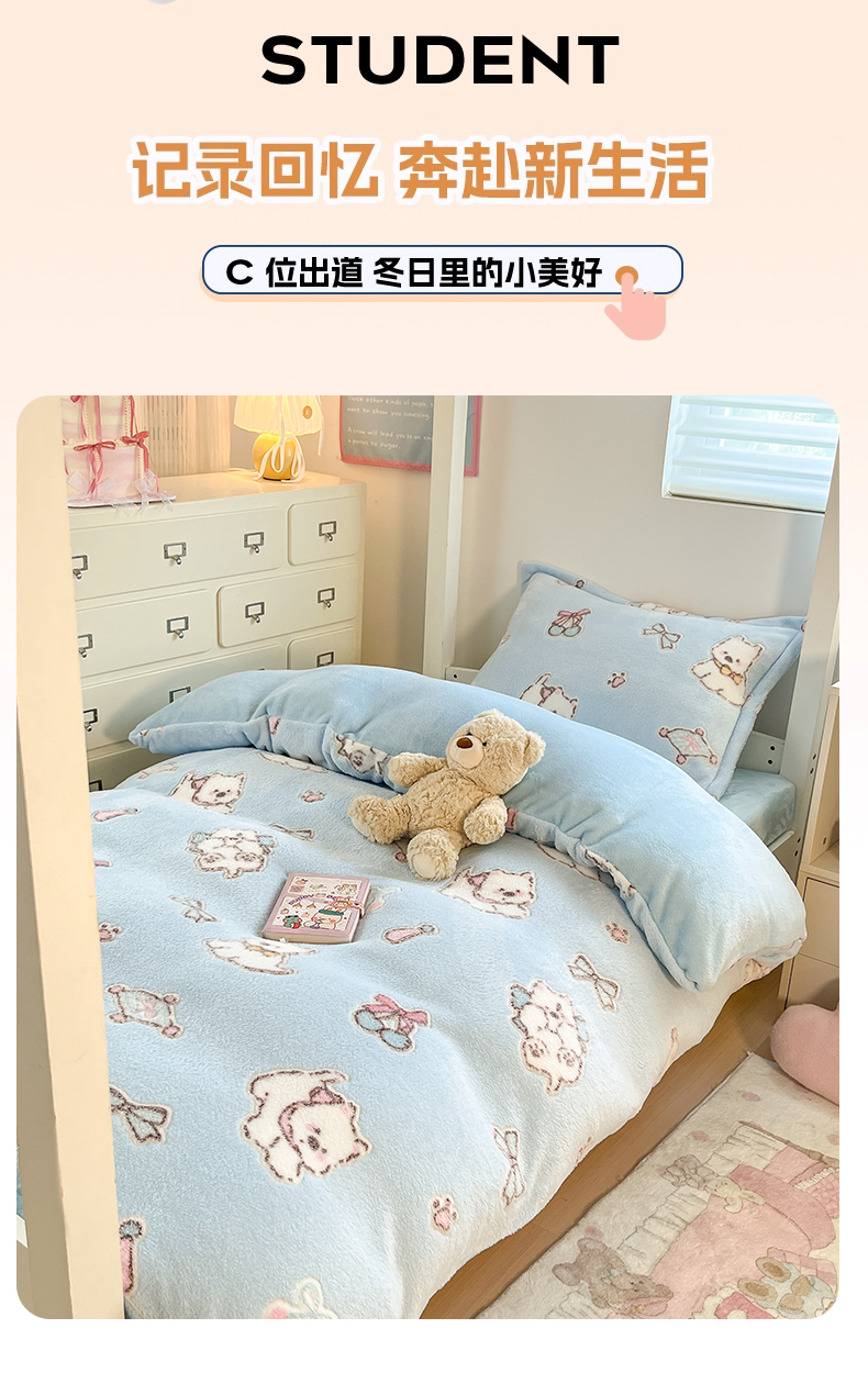 当前位置: 91家纺网 > 商品网购 > 床品套件 > 四件套 > 其它四件套 > 川悦生活 2025新款立体雪花绒印花四件套学生床系列二场景一 奶蓝小汪蓝