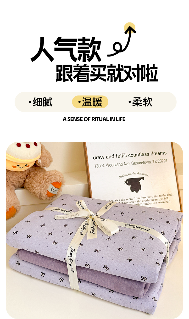 当前位置: 91家纺网 > 商品网购 > 床品套件 > 四件套 > 其它四件套 > 水墨江南 2025新款云感双层纱印花四件套 欢乐颂