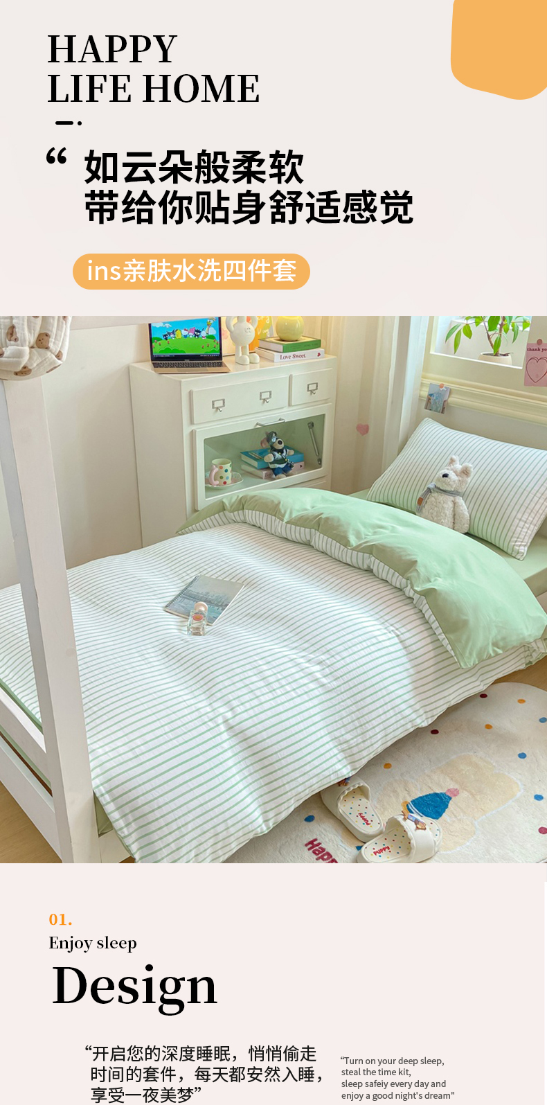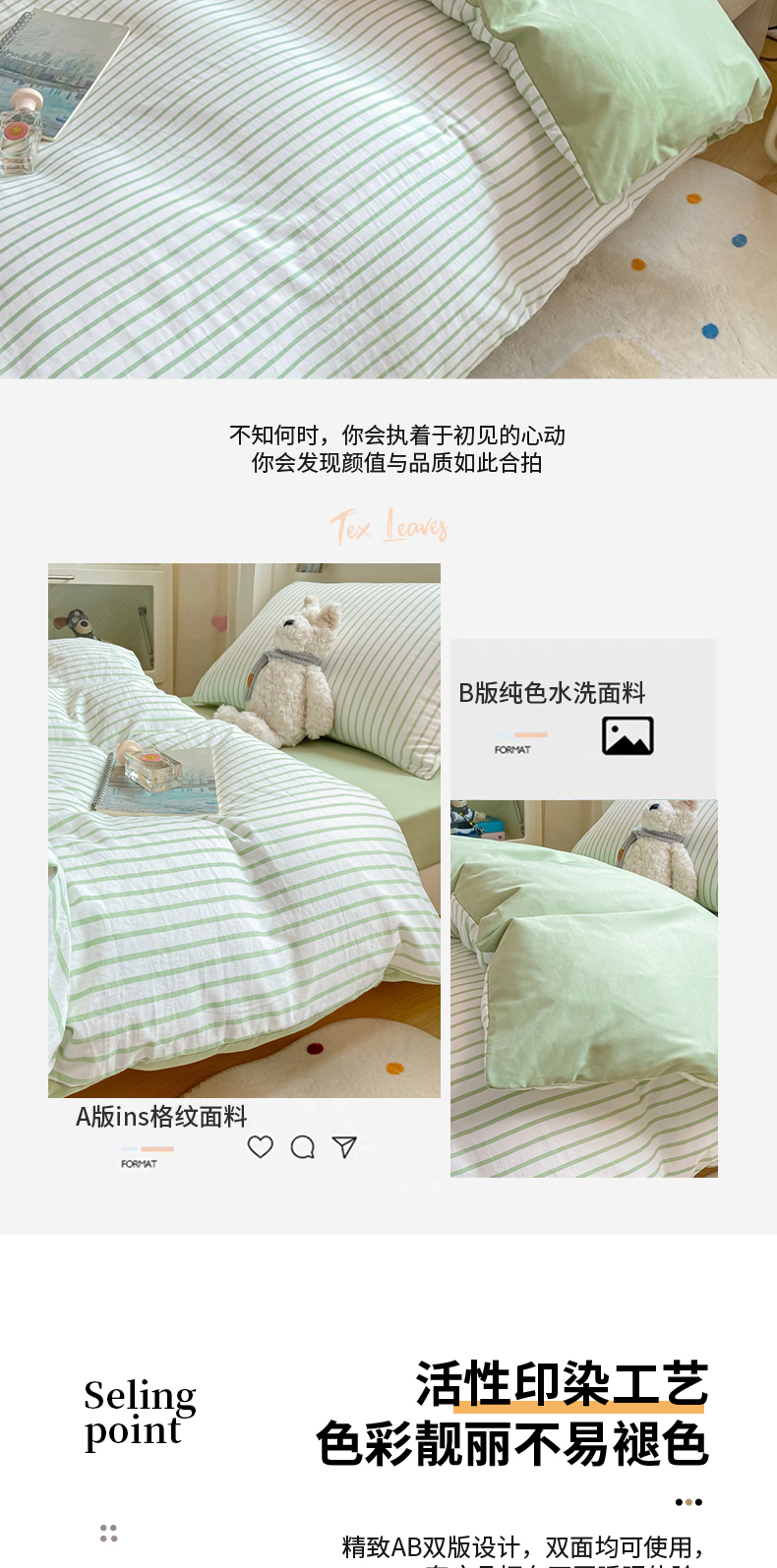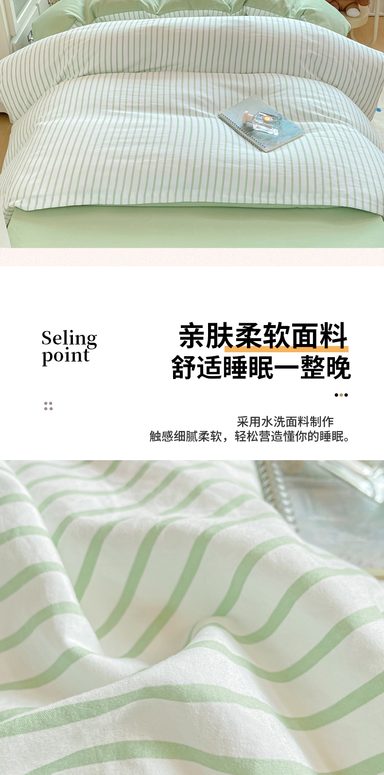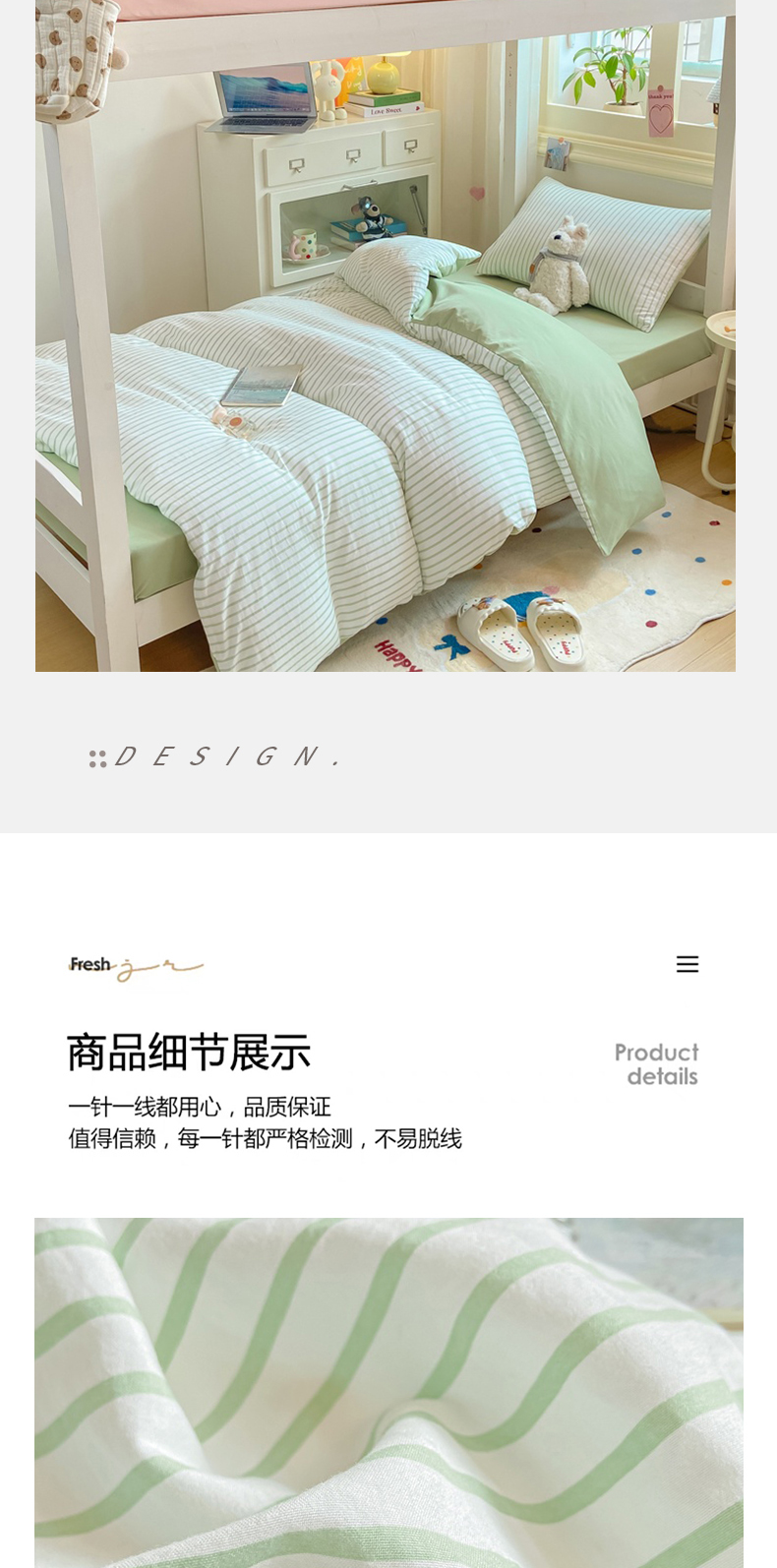 当前位置: 91家纺网 > 商品网购 > 床品套件 > 四件套 > 其它四件套 > 麒东家纺 2025新款开学季学生ins风条纹方格水洗四件套学生上下铺三件套 条纹绿色