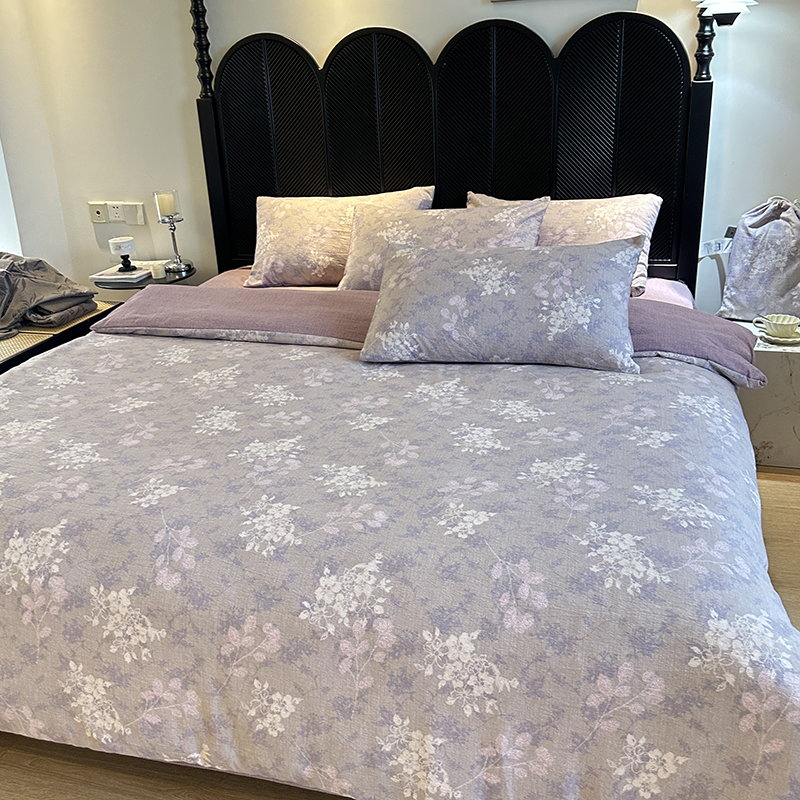 (总)美丽坊 2025新款仿棉麻亚麻质感复古原麻四件套(配同花色布袋五件套),蝶影,花田里,迷迭绿,墨染,南栀,青黛,山野,烟棠紫,岩间絮
