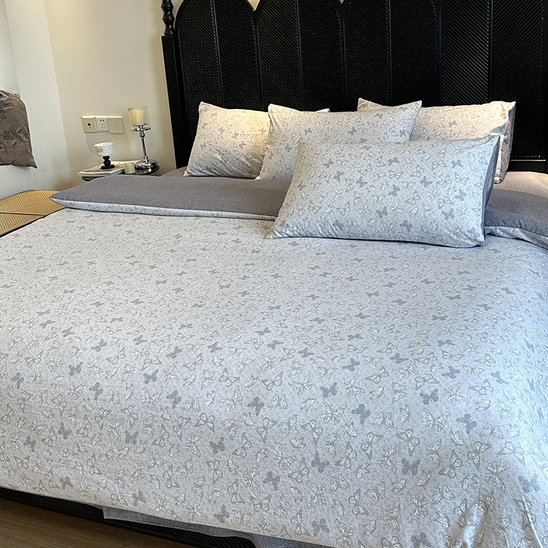 美丽坊 2025新款仿棉麻亚麻质感复古原麻四件套(配同花色布袋五件套) 蝶影,蝶影