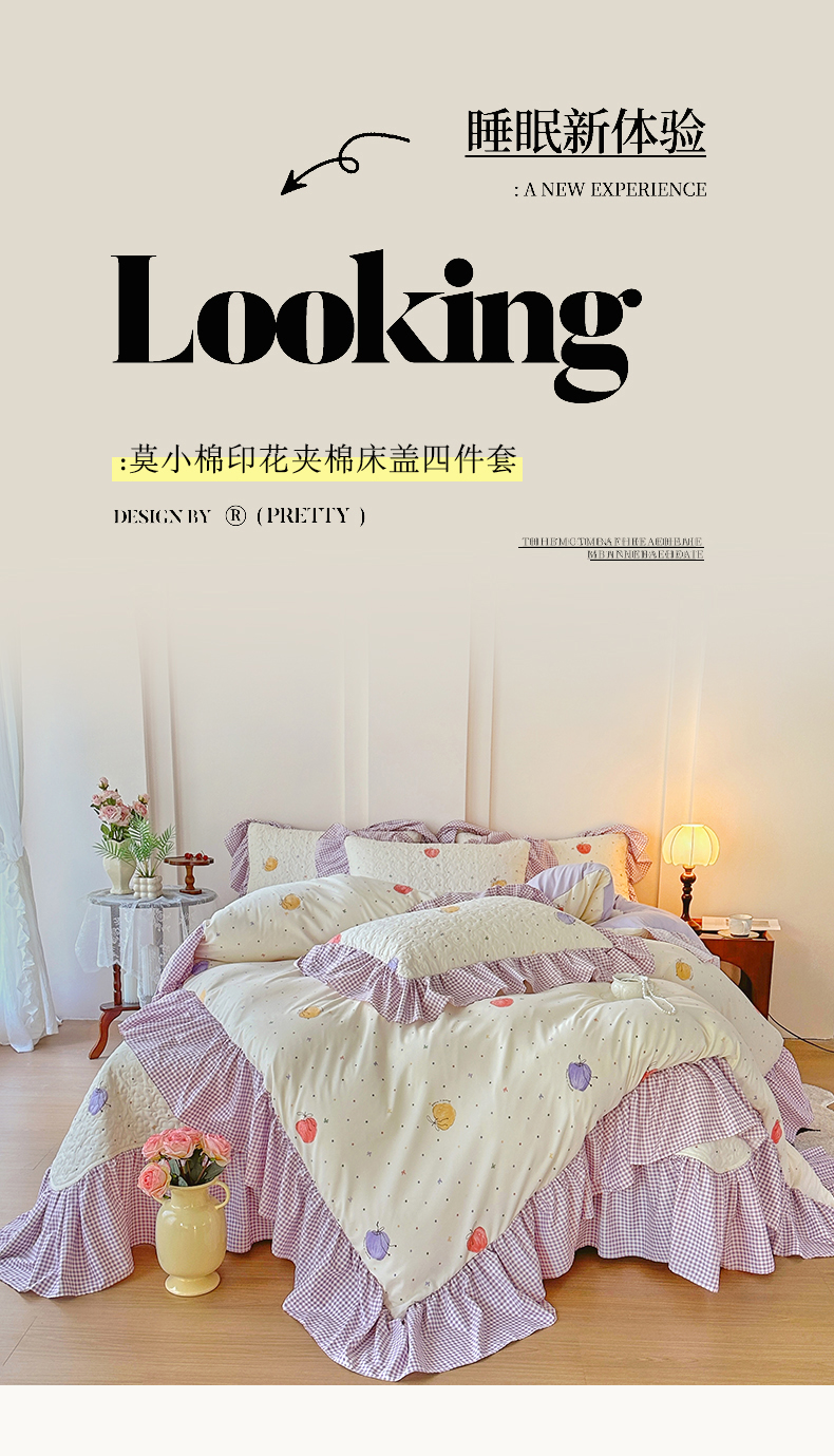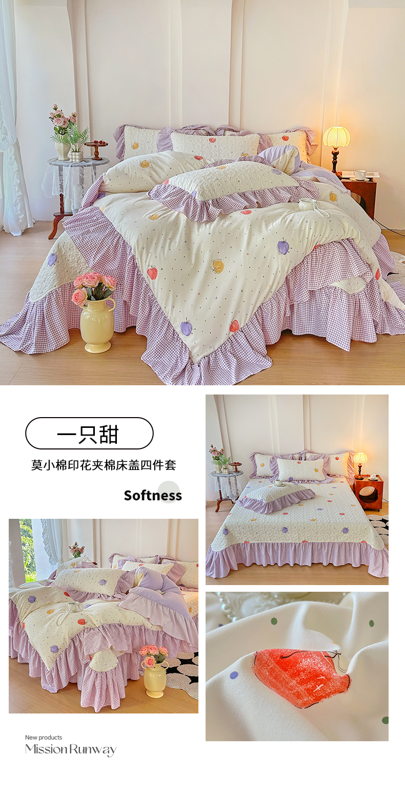 当前位置: 91家纺网 > 商品网购 > 床品套件 > 四件套 > 其它四件套 > 易辰美 2025新款法式公主风夹棉床盖四件套 一只甜