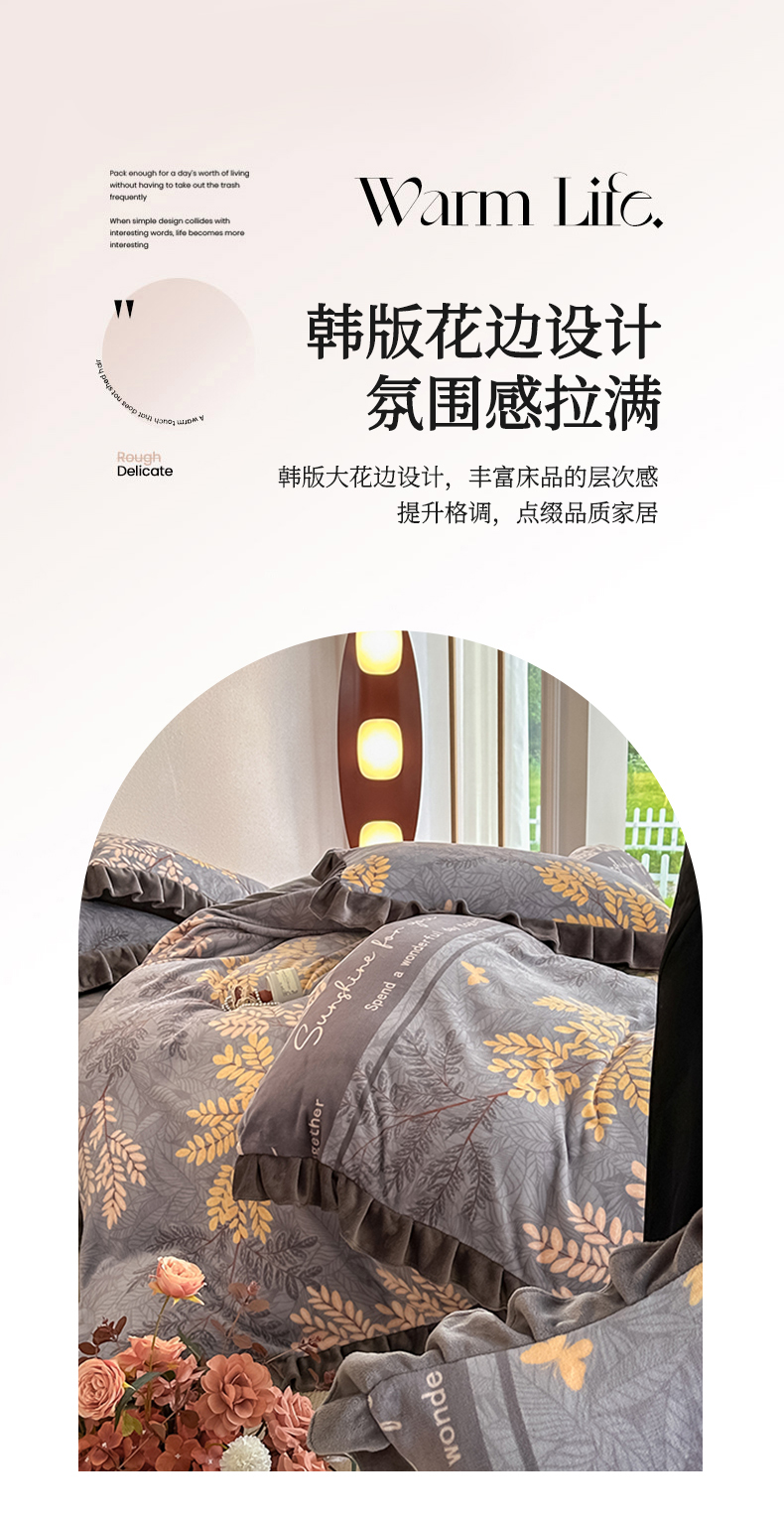 亿品2025新款直播爆款韩版赫本风高克重牛奶绒四件套床裙款 8.5斤(有买家秀加v) 花语,花语