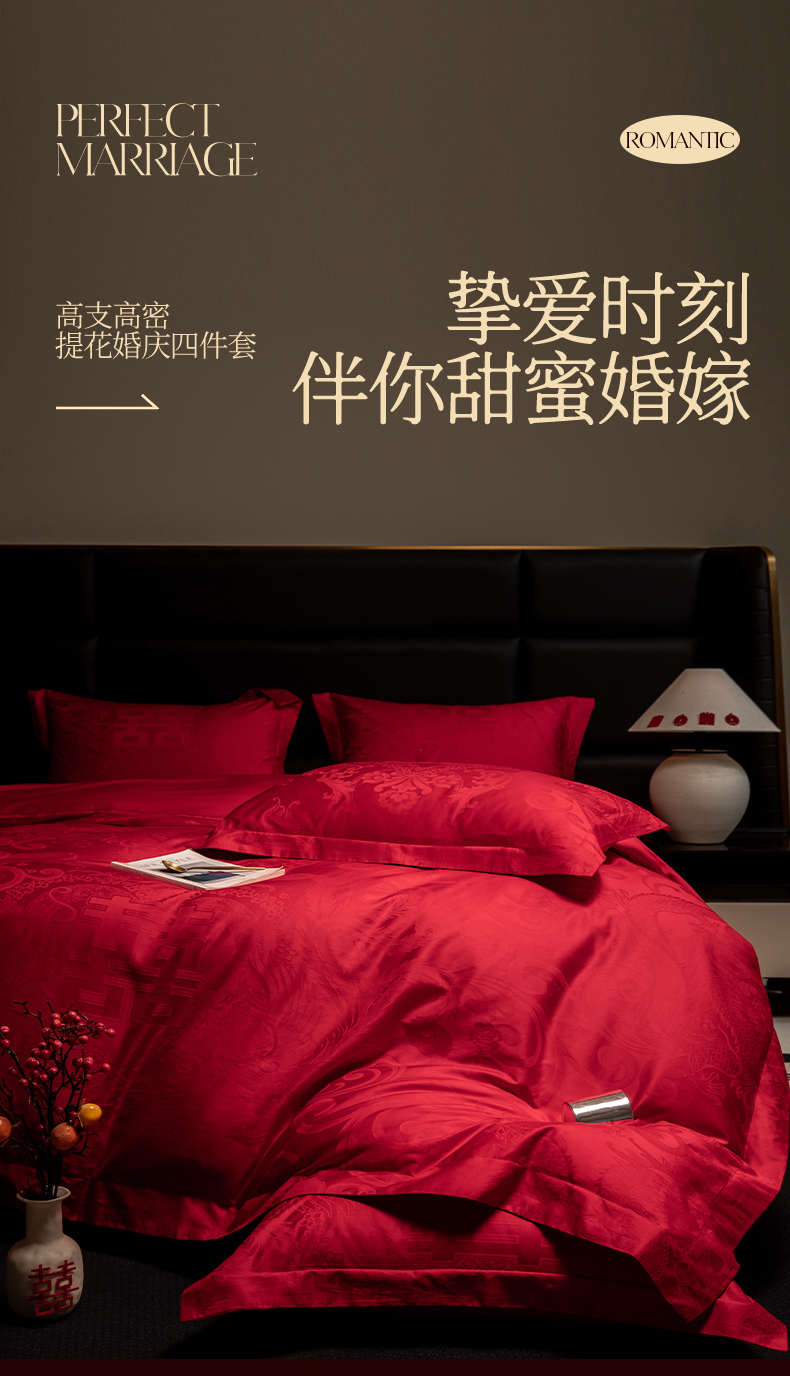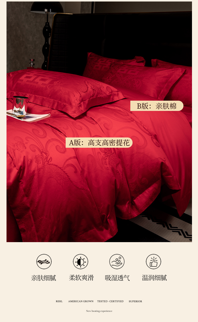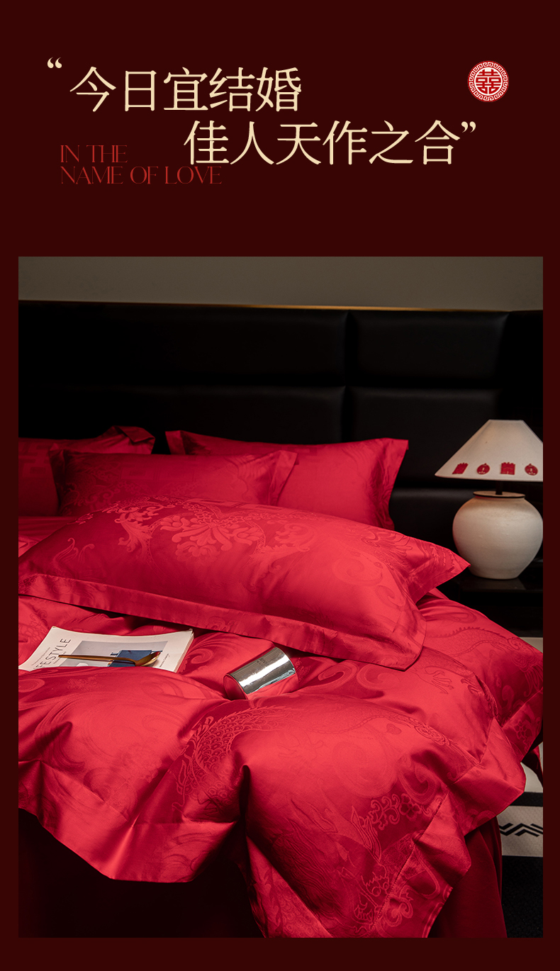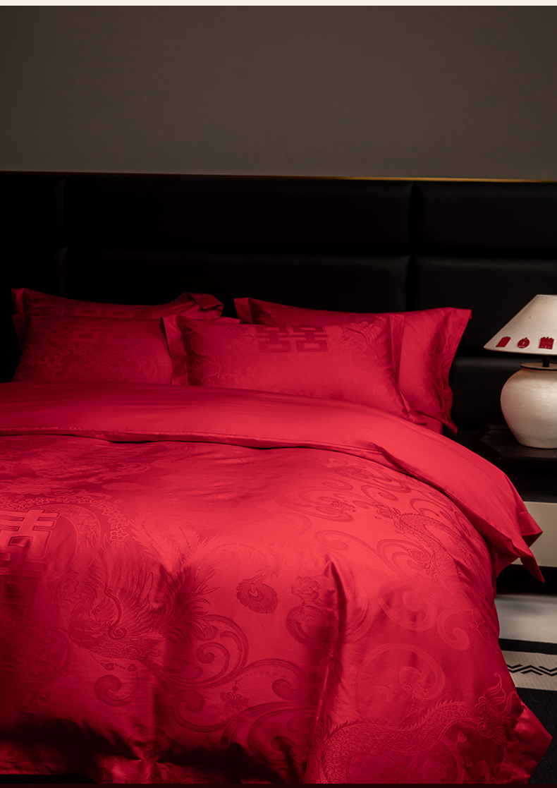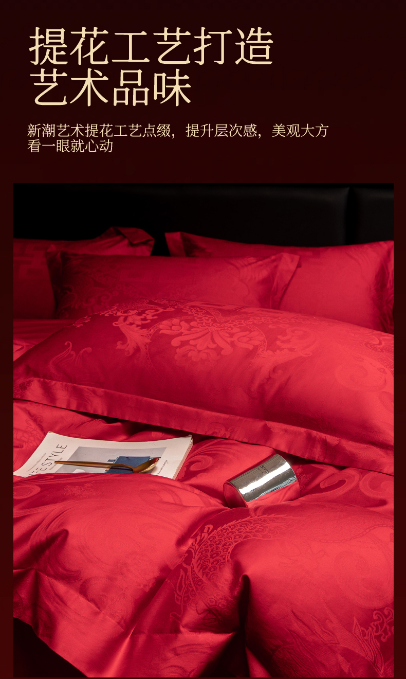 当前位置: 91家纺网 > 商品网购 > 床品套件 > 四件套 > 婚庆四件套 > 欧乐蒂 2025新款高支高密婚庆提花四件套 龙凤瑞喜