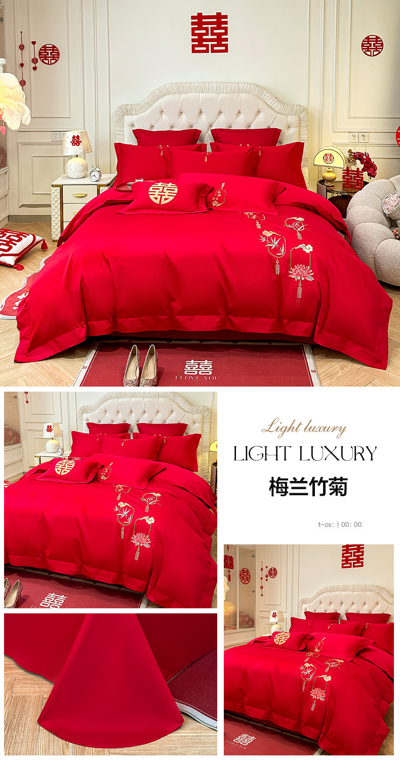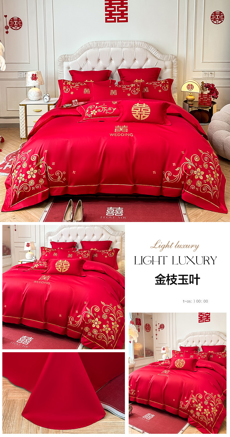 (总)欧乐蒂 2025新款亲肤棉刺绣花边婚庆四件套-浪漫花季,浪漫花季-红,浪漫花季-金