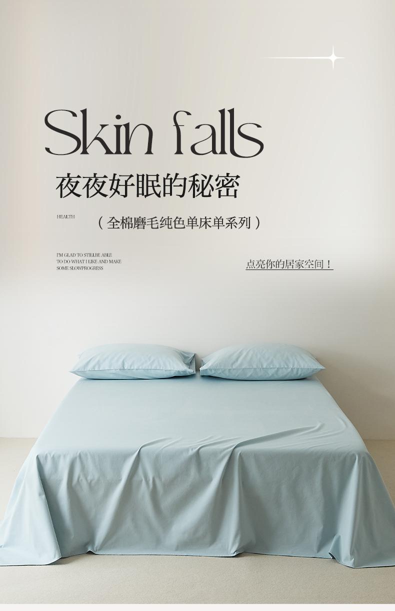 EH家居 2025新款全棉磨毛纯色单床单-云栖系列 海蓝