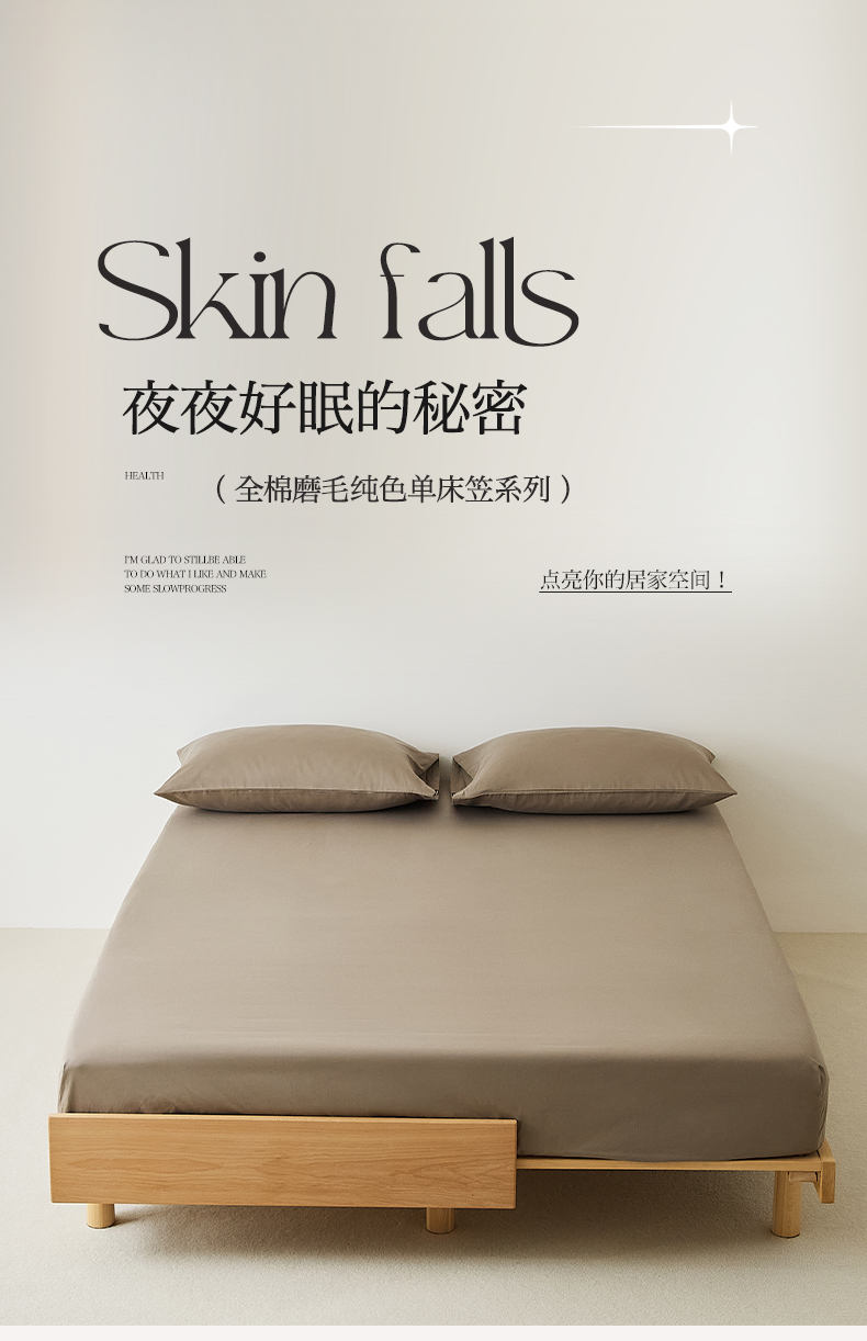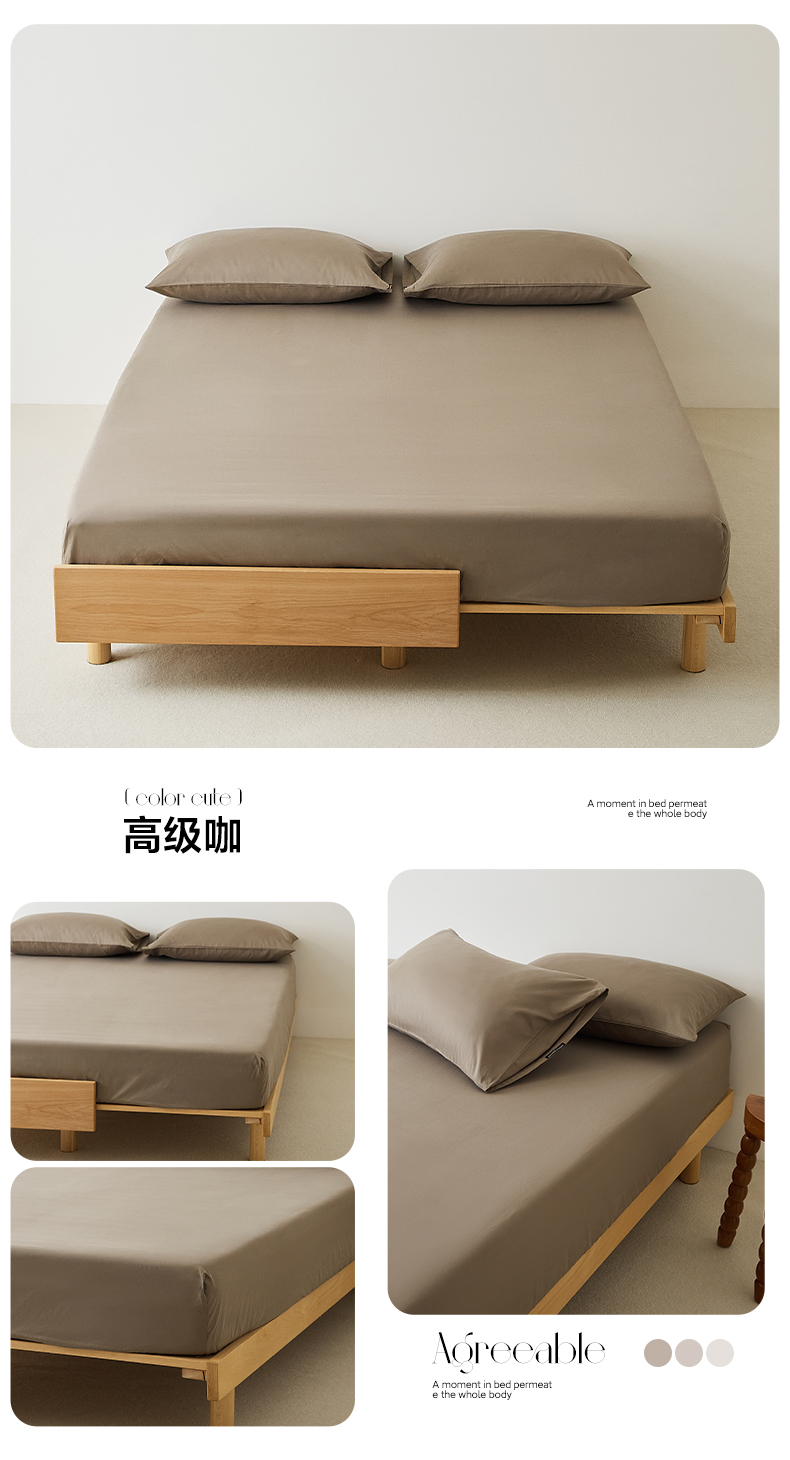 • 91家纺网 家纺一手货源 找家纺 EH家居 2025新款全棉磨毛纯色单床笠-云栖系列 高级咖
