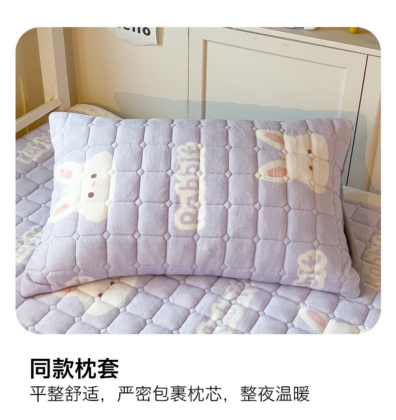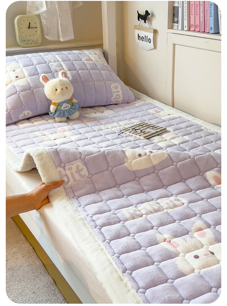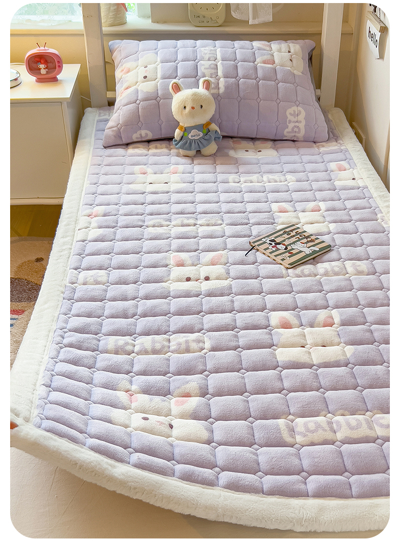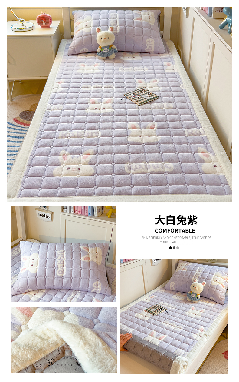 商品名称:丝幔家纺 2025新款牛奶绒印花床护垫学生款 大白兔紫